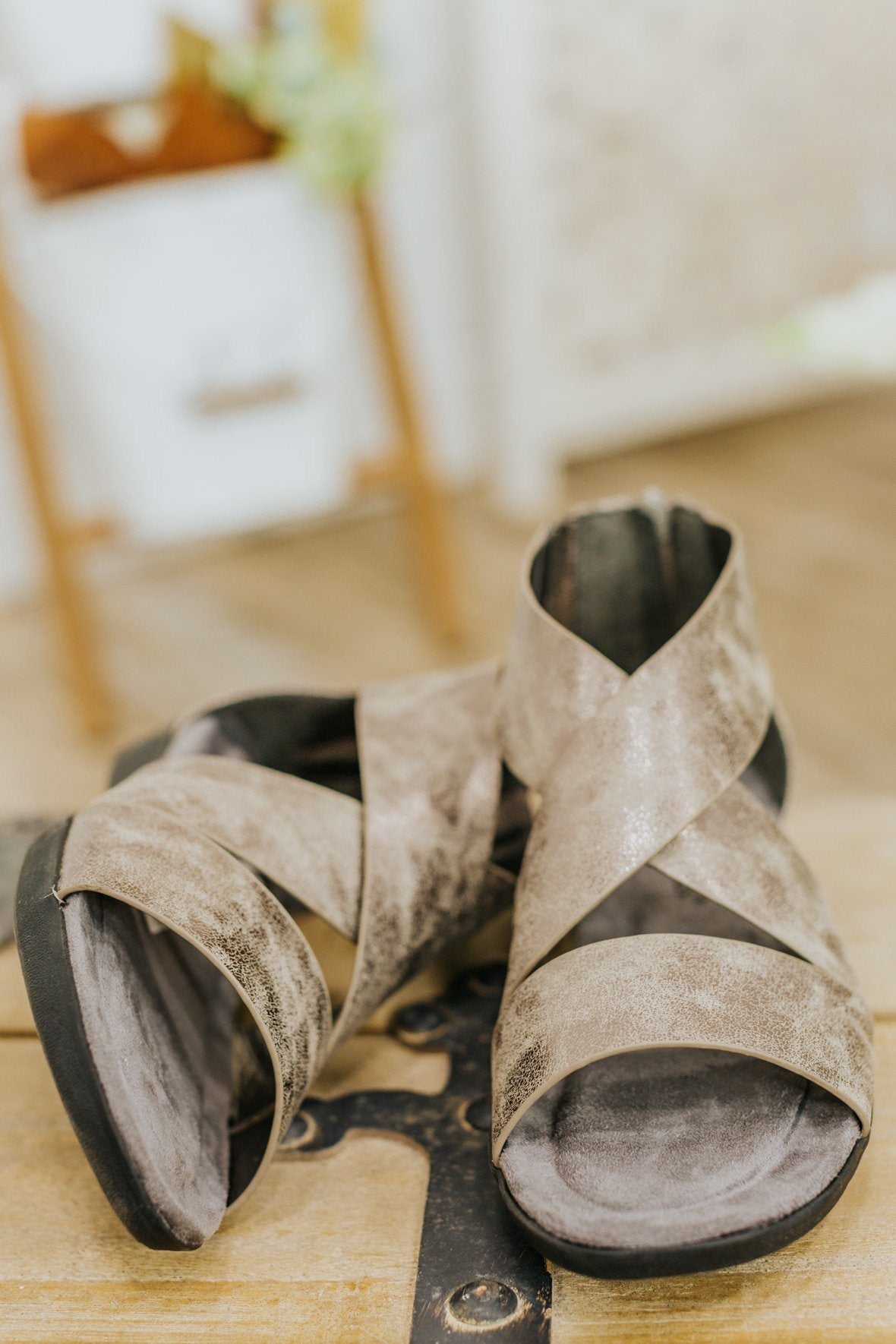 Break Them In Criss Cross Closed Back Sandal in Pewter