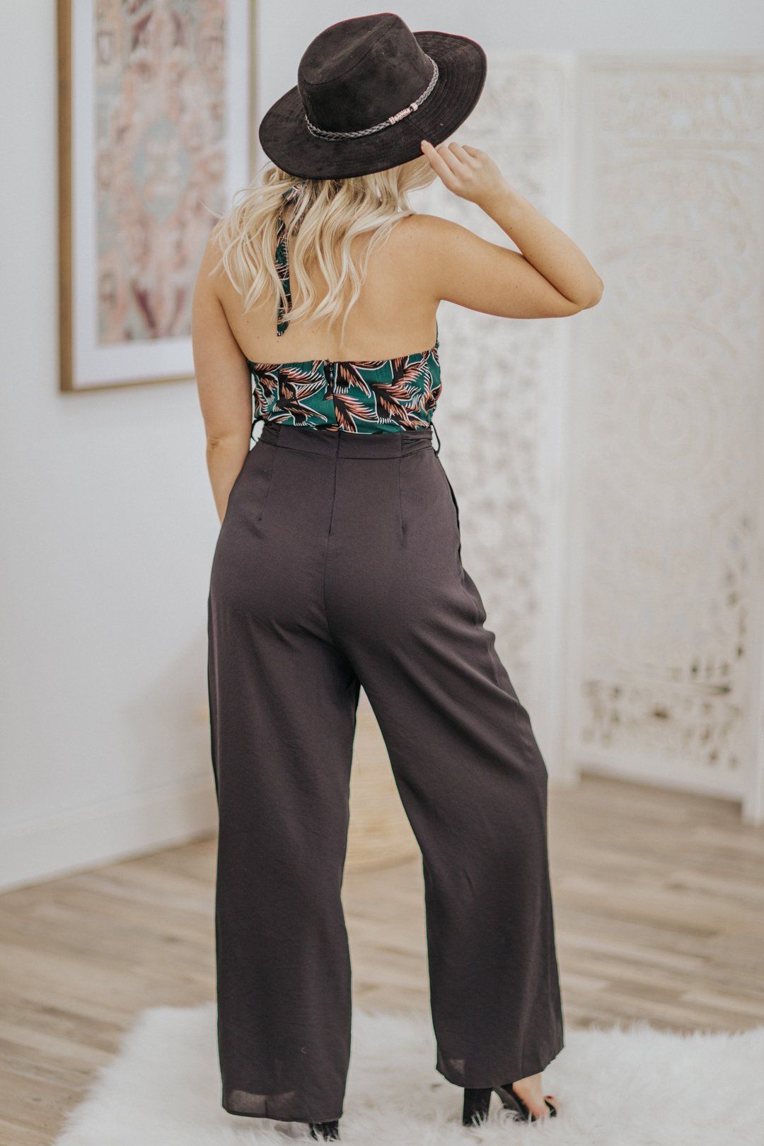Could Be The One Fern Print Halter Top Sleeveless Jumpsuit in Hunter Green