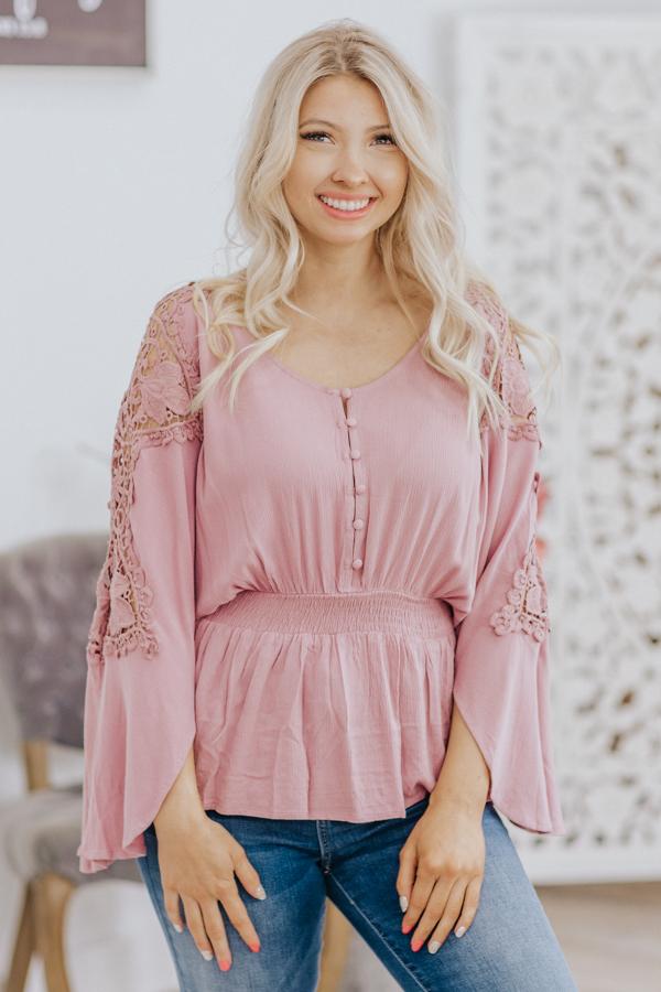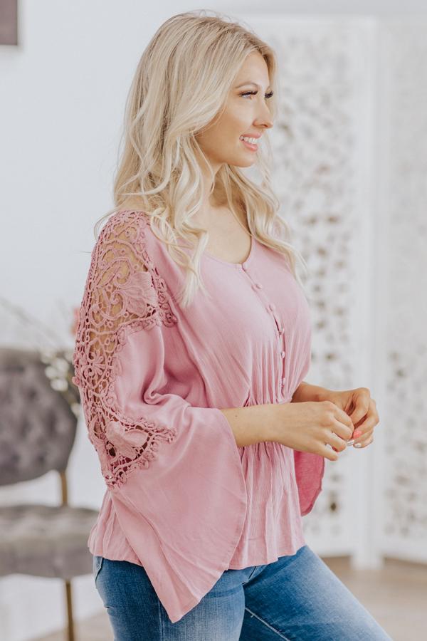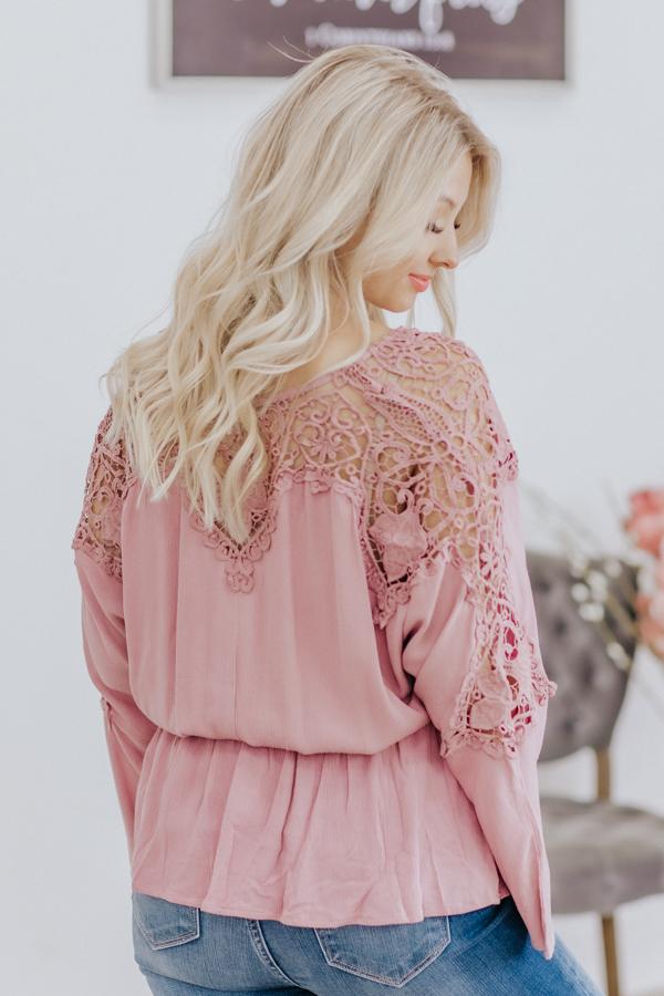 Faith, Hope, Love Lace Cinched Elastic Waist Button Down in Mauve