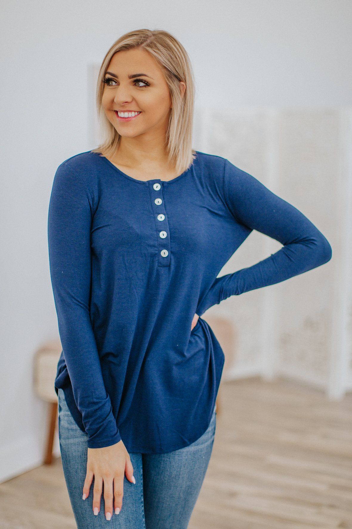 Enjoy the Little Things Long Sleeve Top in Navy
