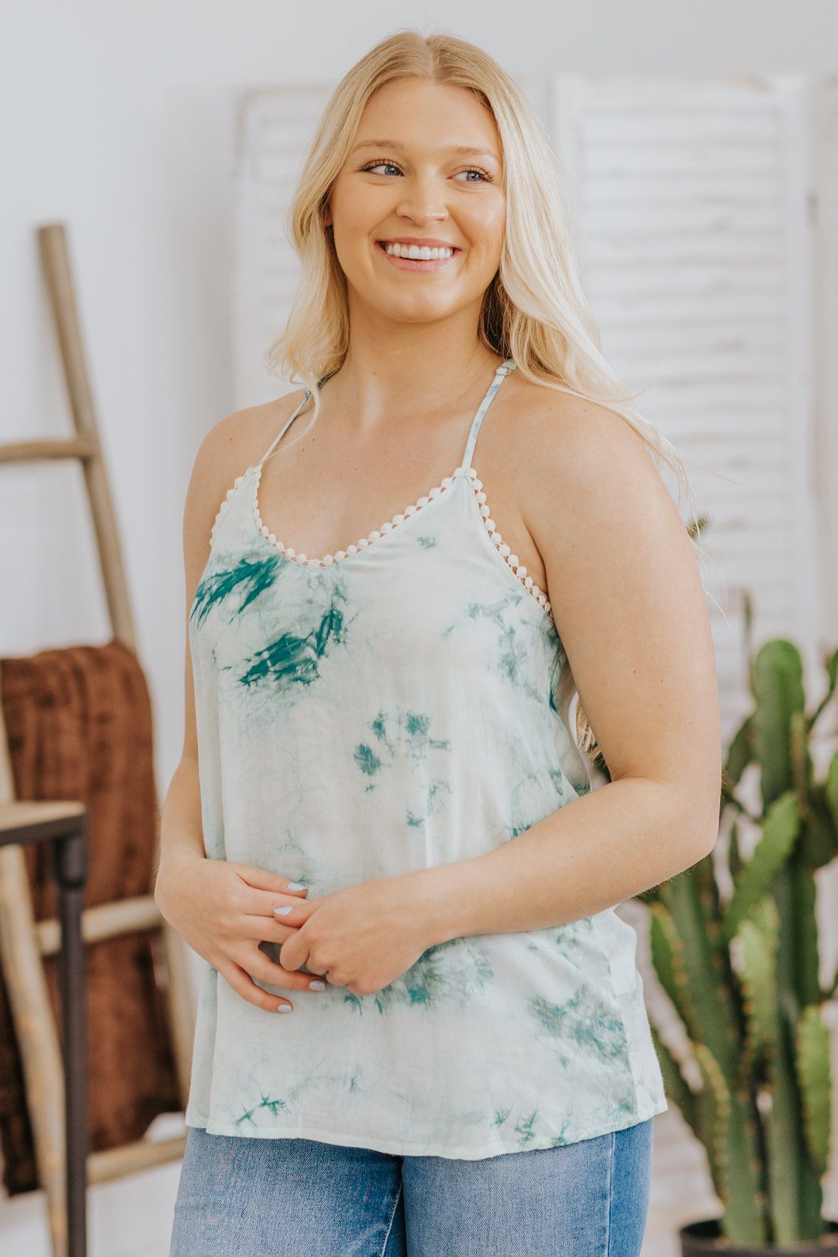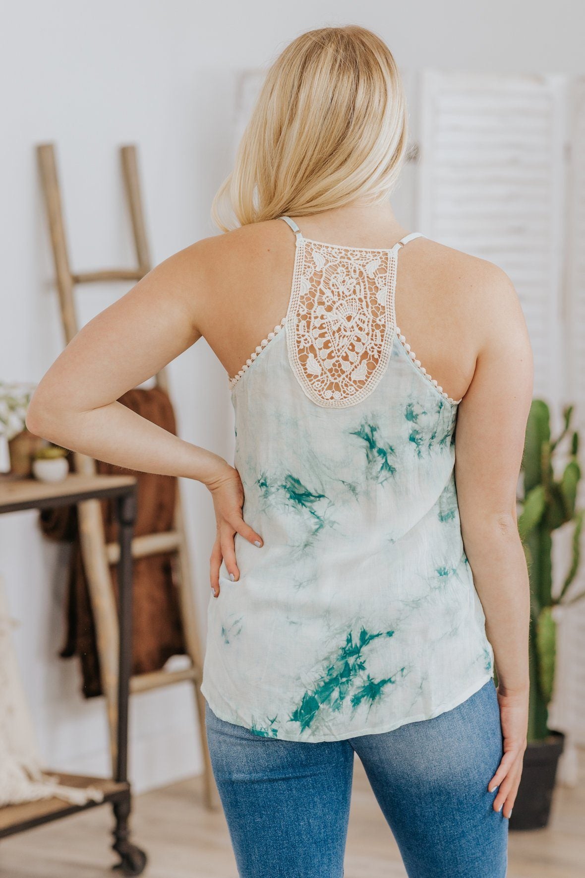Ability To Persist Tie Dye Crochet Lace Sleeveless Tank Top in Mint Green