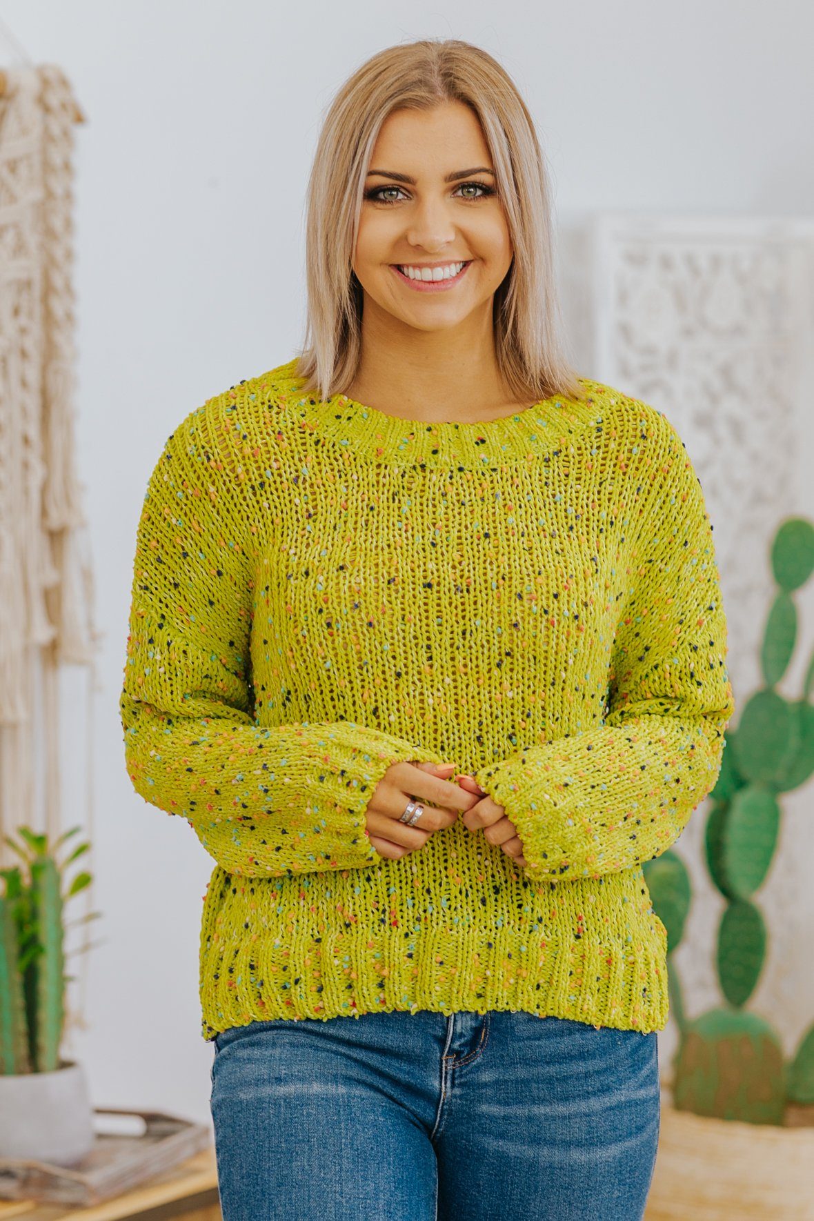 Happiness Can Be Found Long Sleeve Top in Lime Green