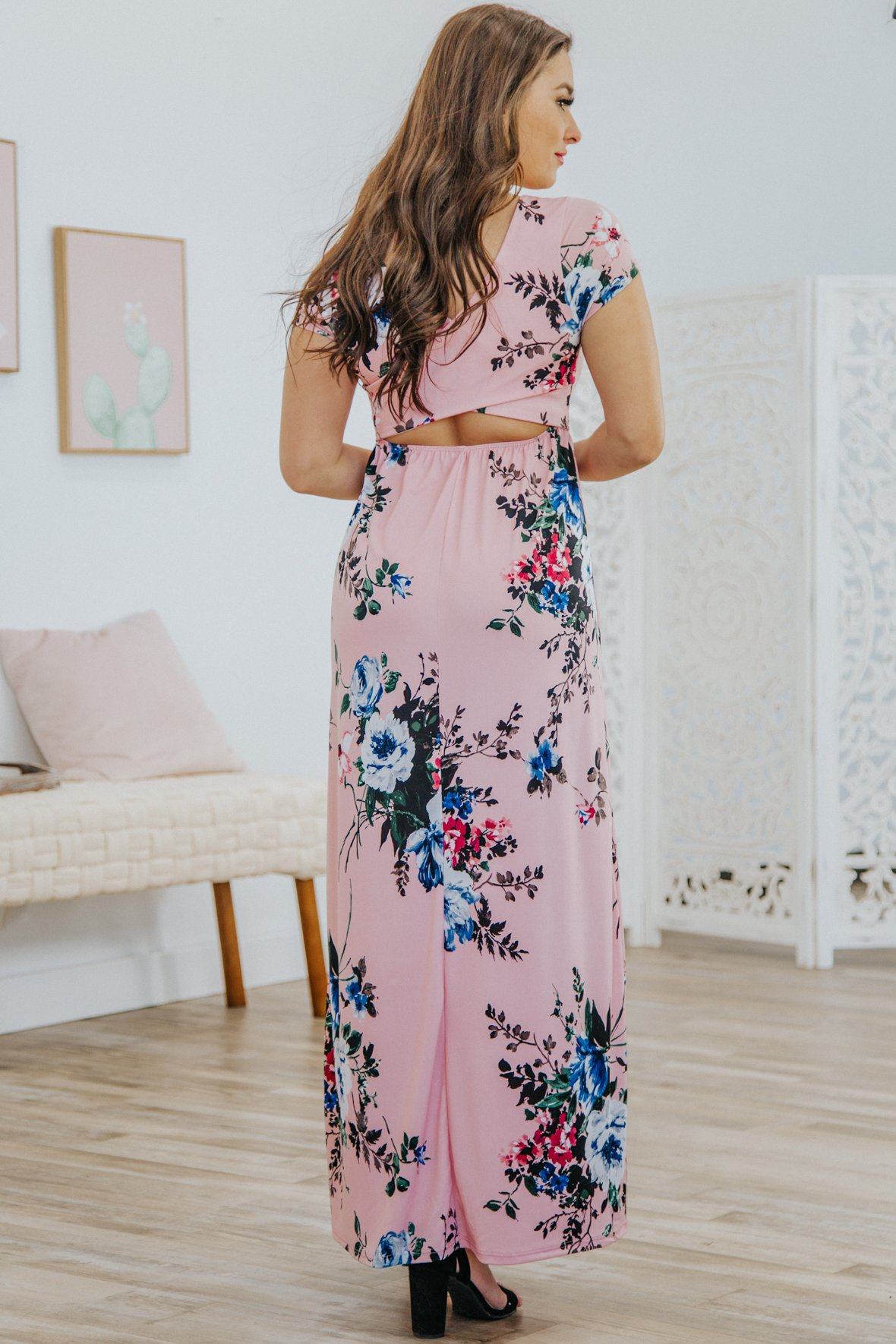Change The Standard Floral Short Sleeve Maxi Dress in Light Pink