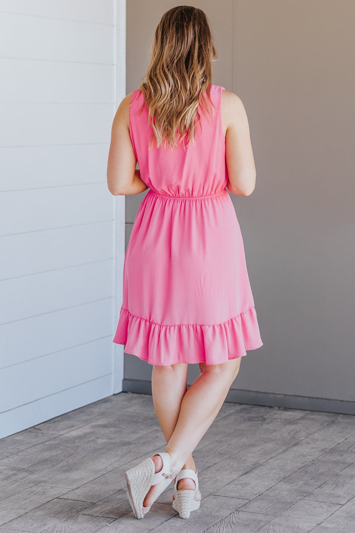 Feelin' Springy Elastic Waist Ruffle Short Dress in Fuchsia