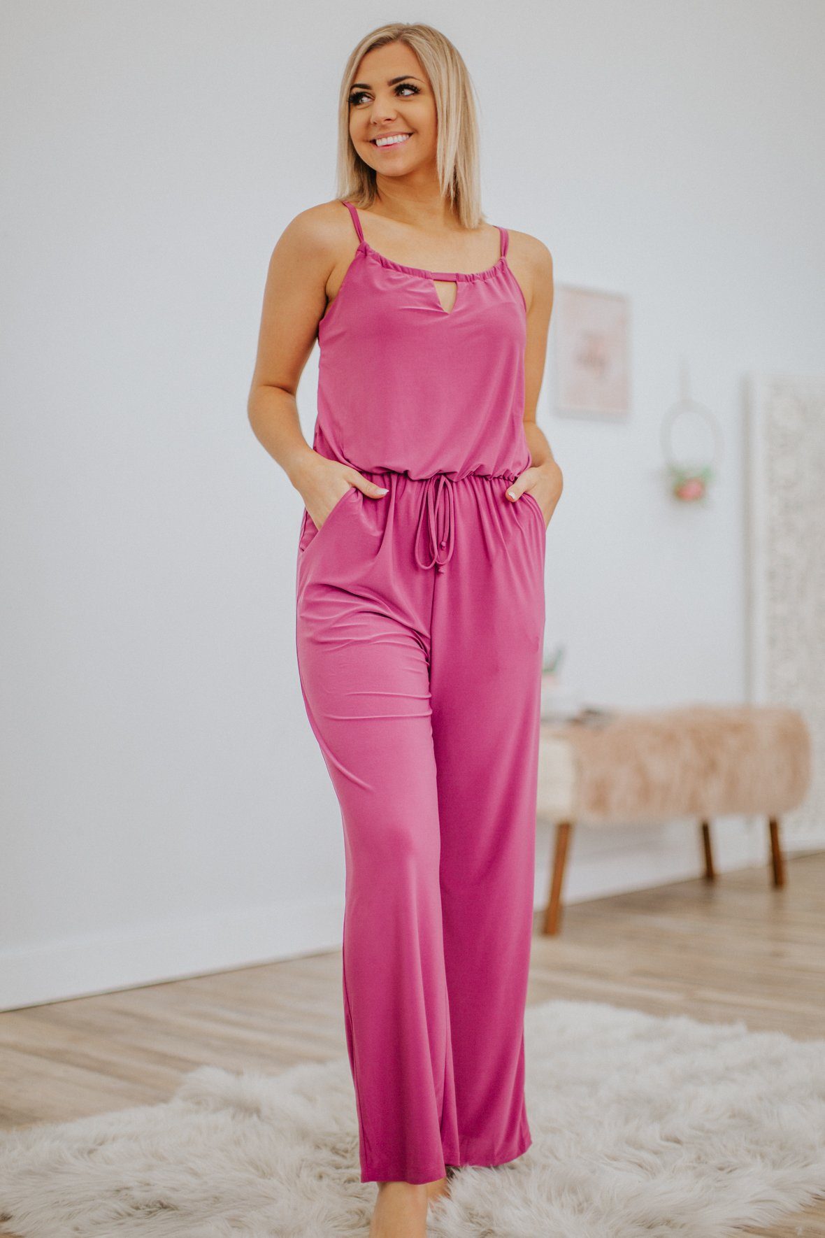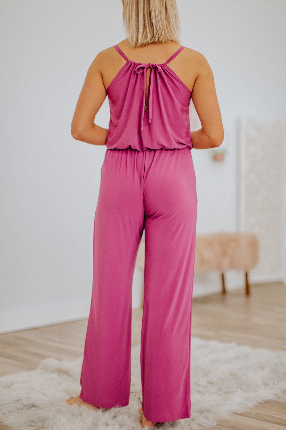 Be Like Me Elastic Waist Wide Leg Pleated Sleeveless Jumpsuit in Grape