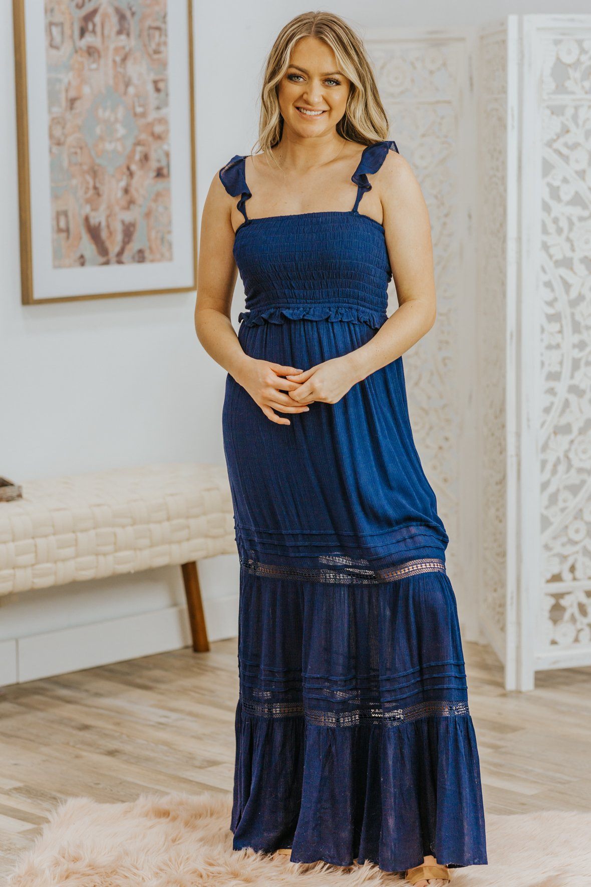Go On Living Smocking Bodice Maxi Dress in Navy