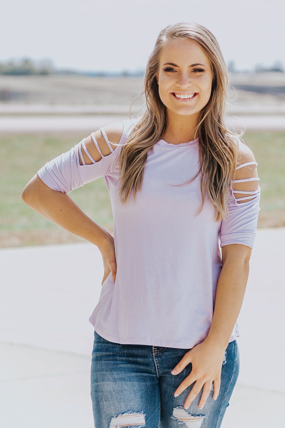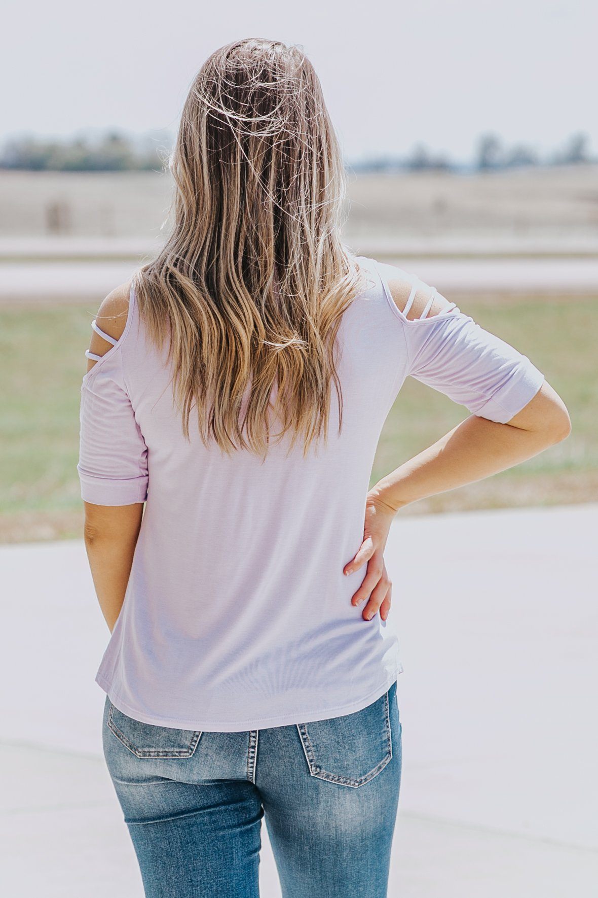 Finding The Fight In Me Strappy Cold Shoulder Top in Light Purple