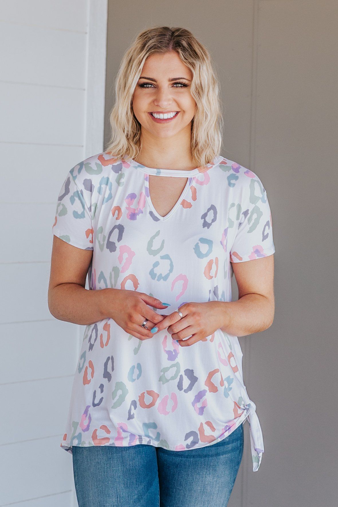 Always on the Prowl Animal Print Short Sleeve Top in Ivory