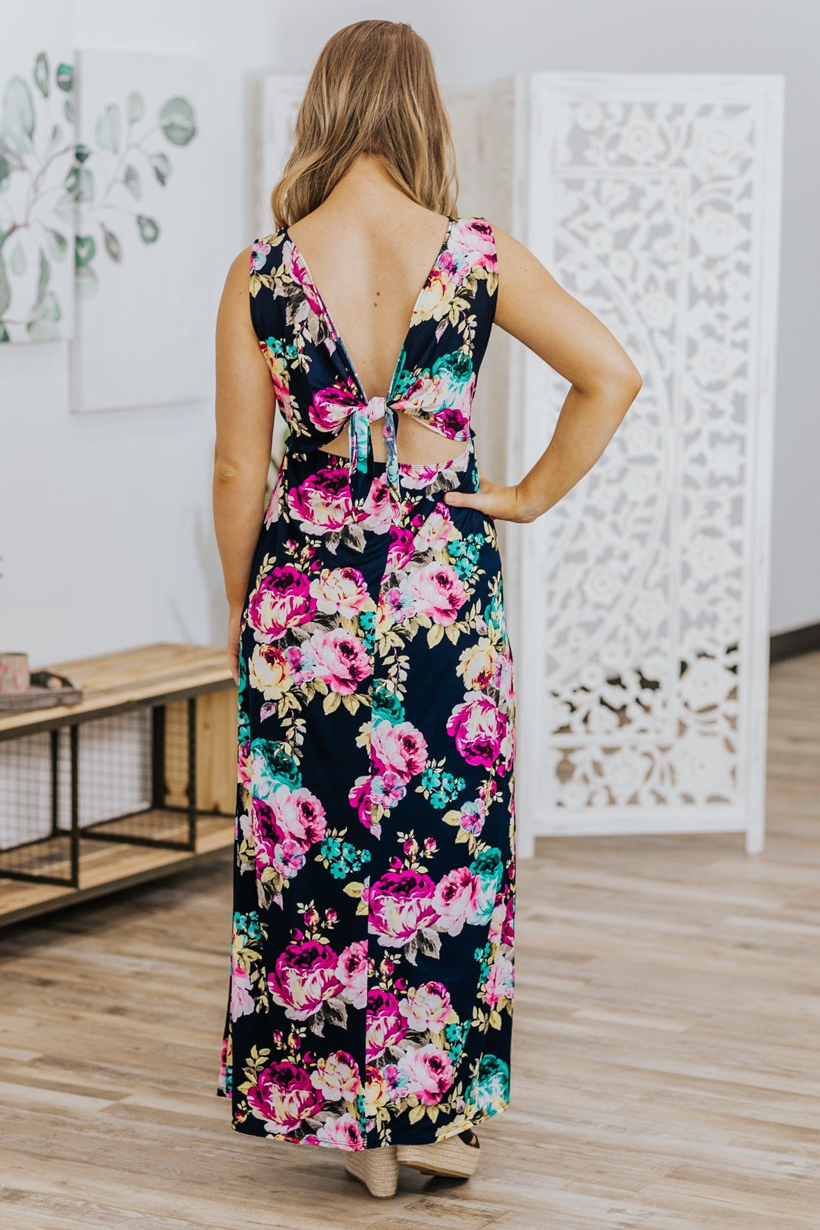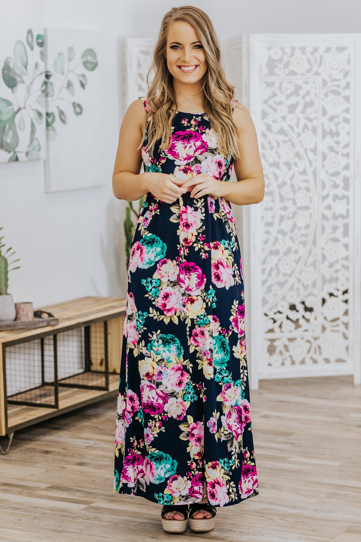 Everything's Alright Floral Print Sleeveless Dress in Navy
