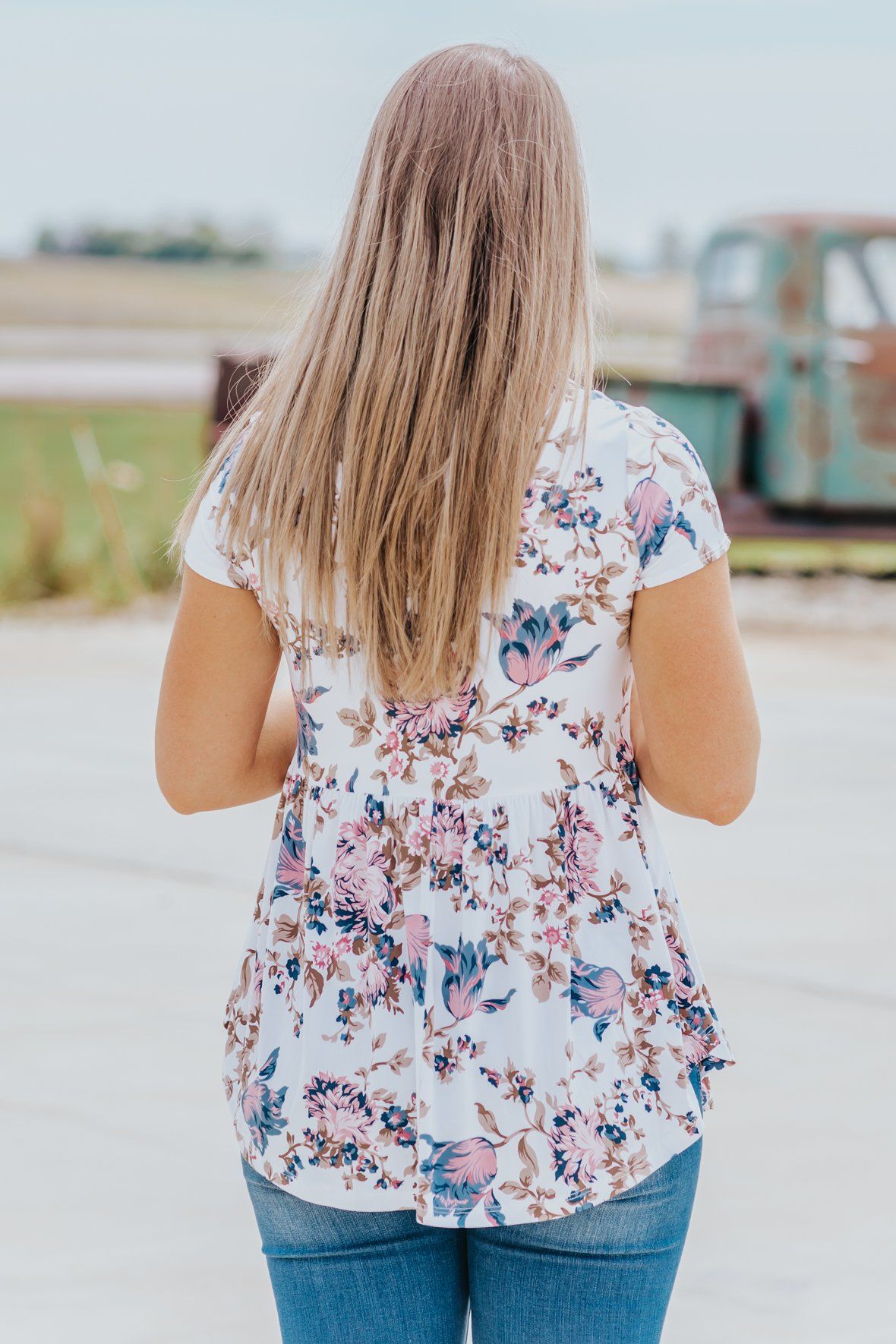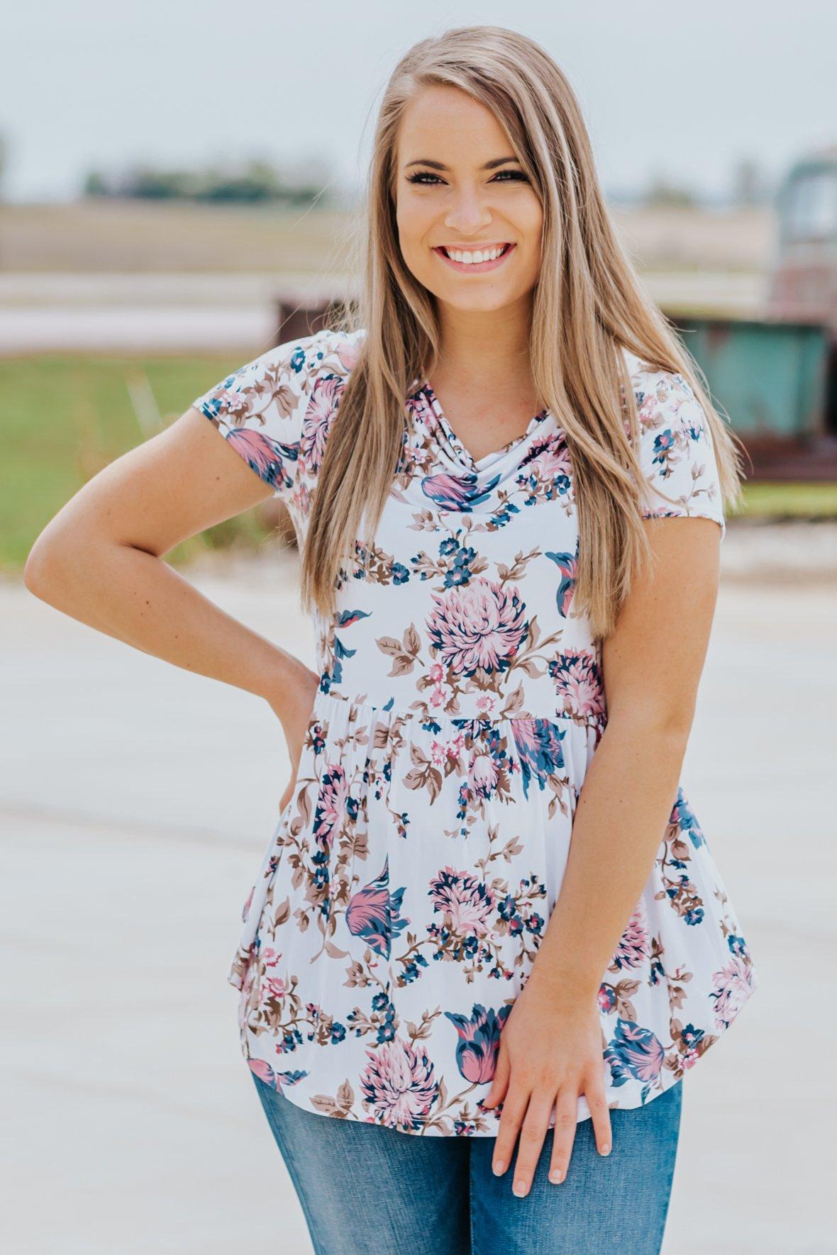 Bouquets of Fun Cowl Neck Babydoll Top in White