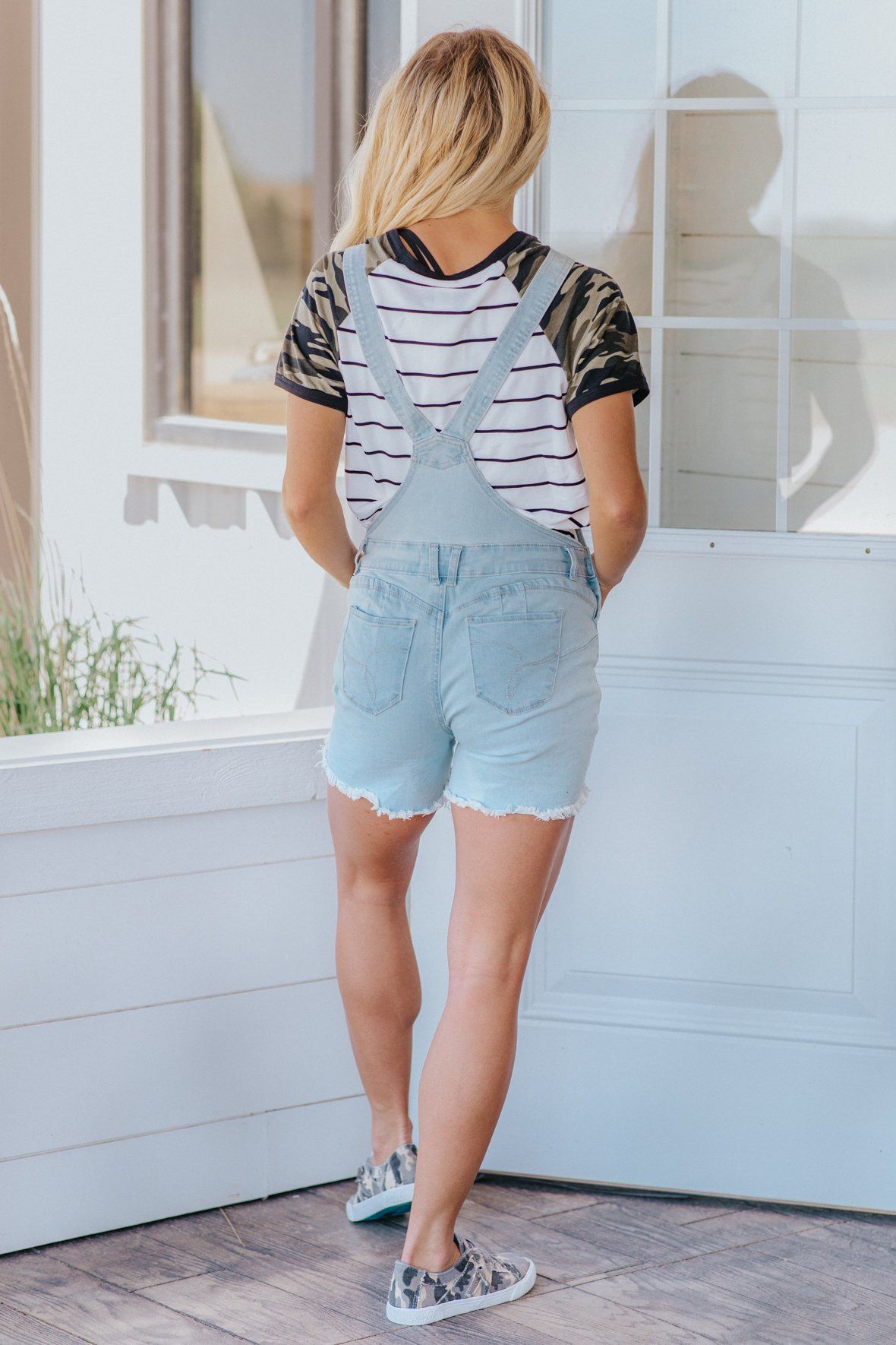 At A Cross Road Overall Jeans Short In Light Denim