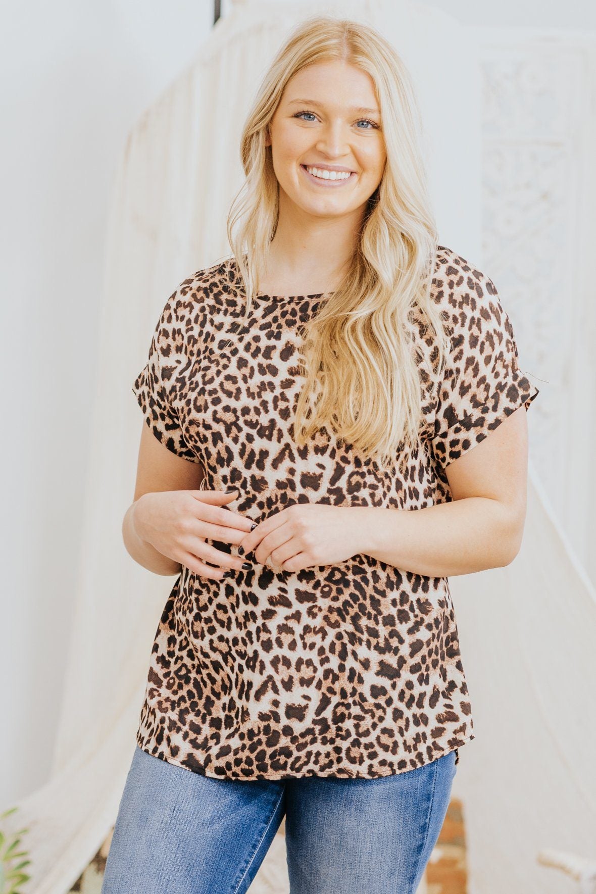 Be Better Than The Rest Leopard Print Cuffed Short Sleeve Top in Brown