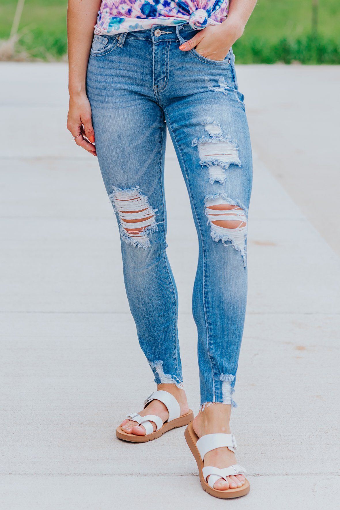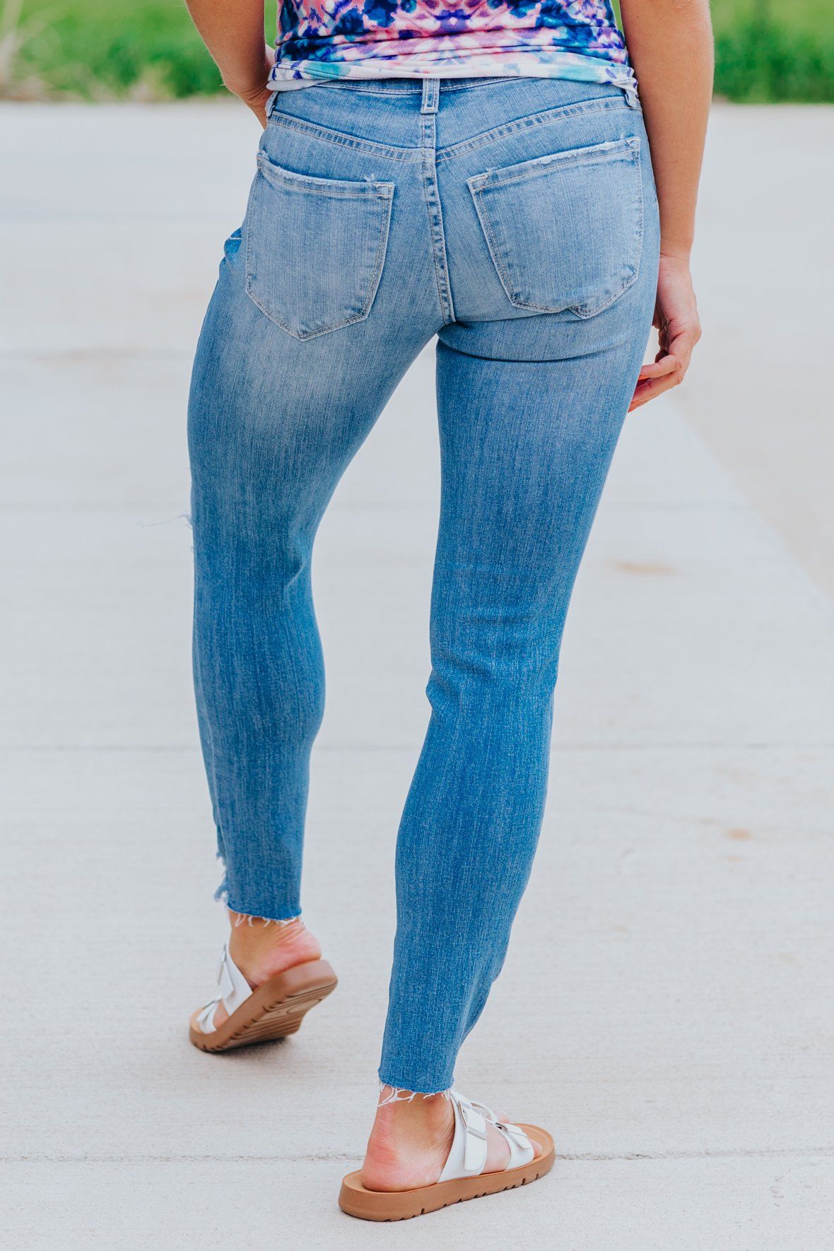 Better Together Mid Rise Distressed Raw Edge Hem Light Wash Jeans