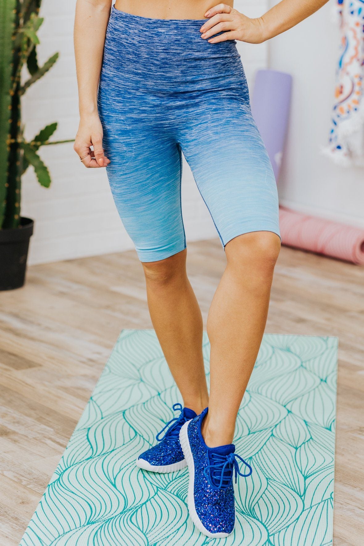 Here You Come Tie Dye Ombre Athletic Biker Shorts in Blue