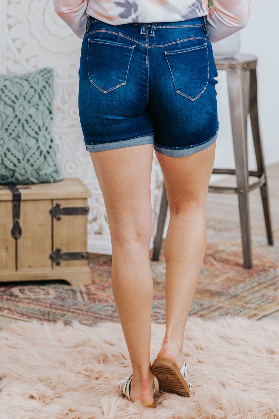 Gun Powder and Lead Mid Rise Dark Wash Distressed Jean Shorts