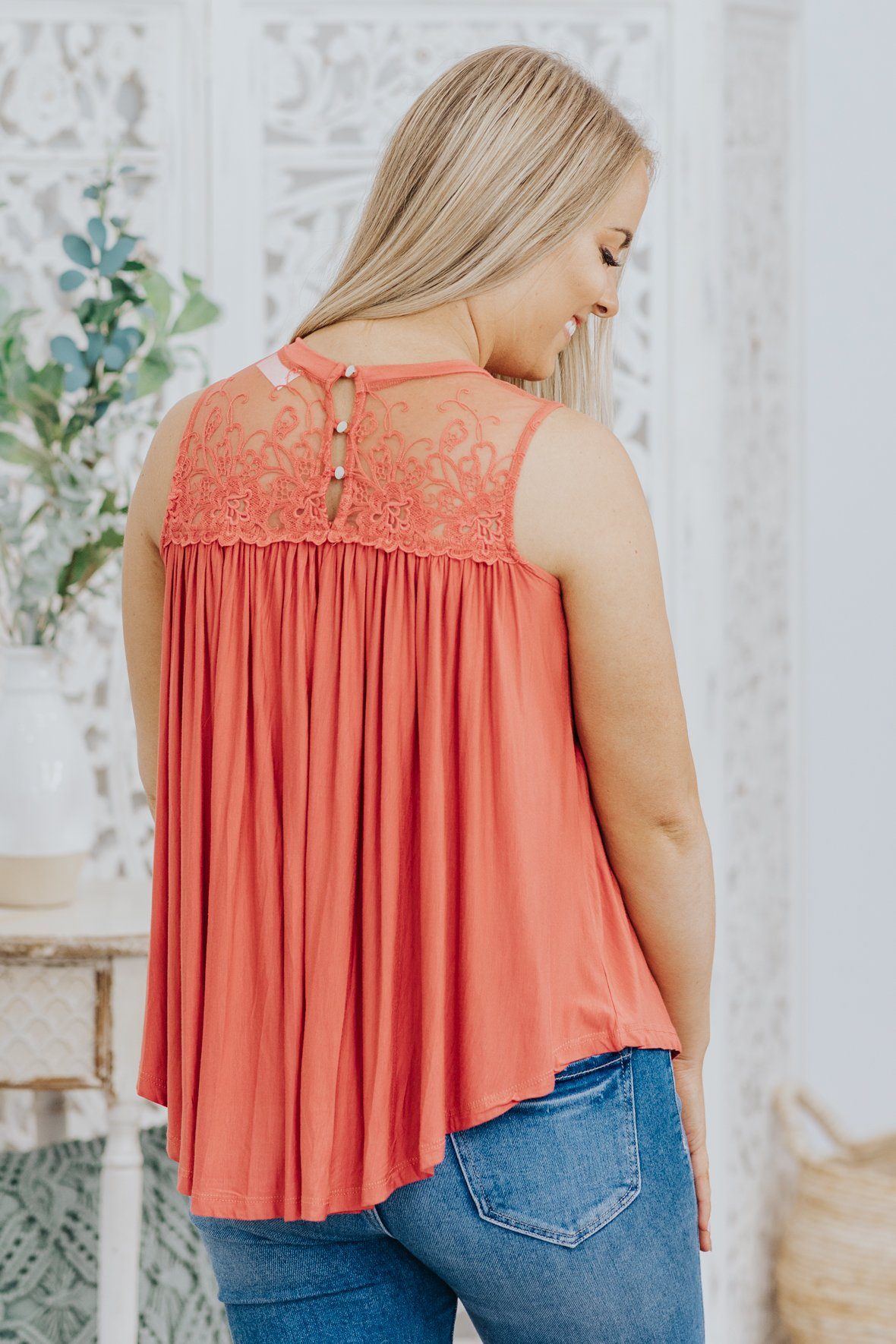 Can I Be Honest Button and Lace Flowy Tank in Brick
