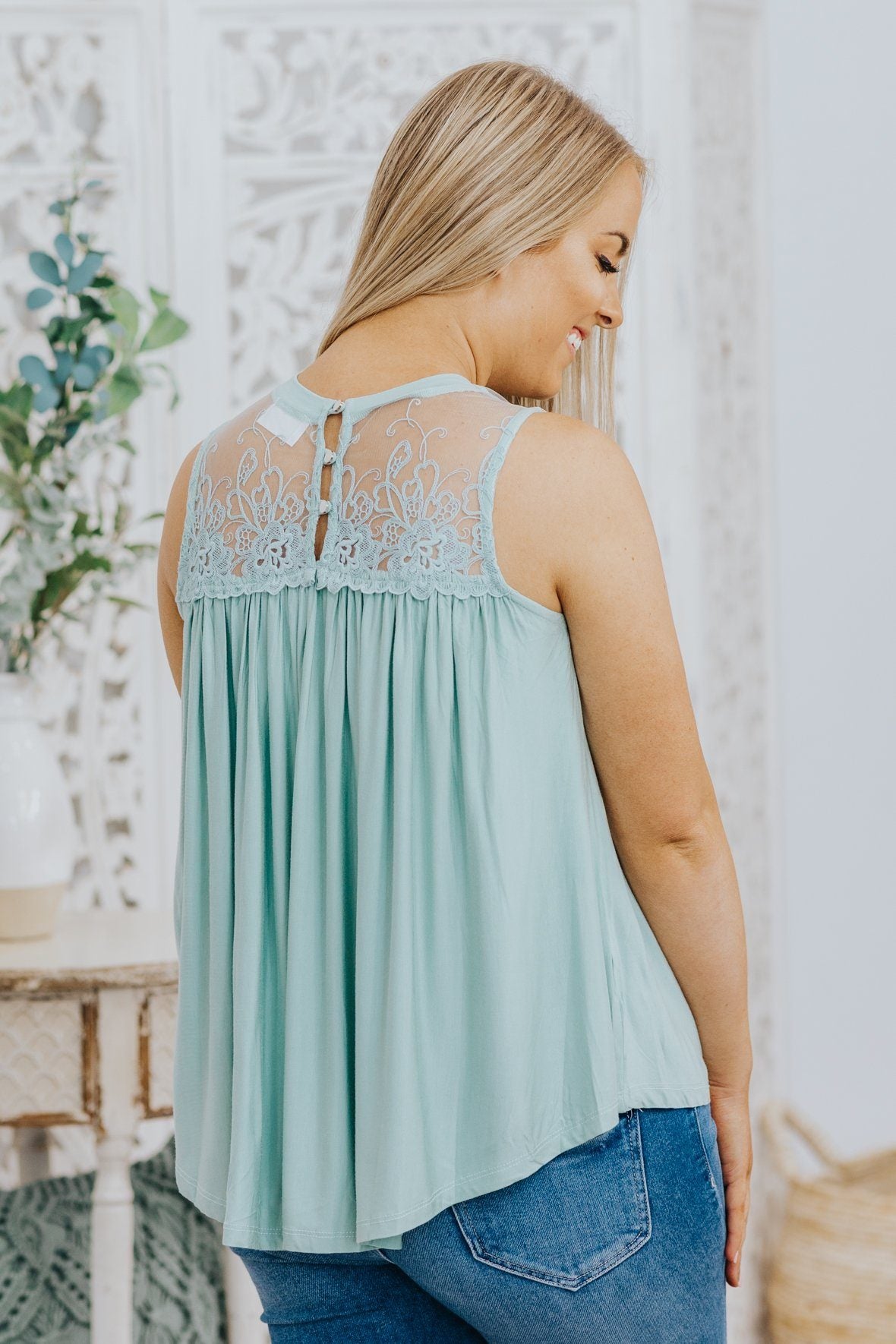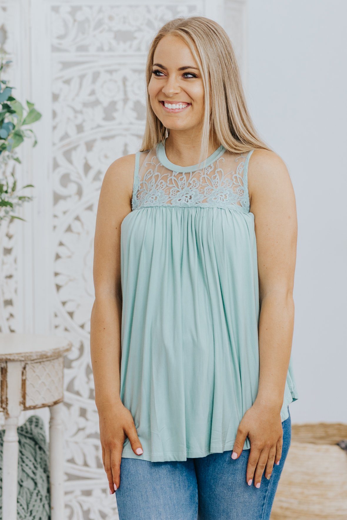 Can I Be Honest Button and Lace Flowy Tank in Sage