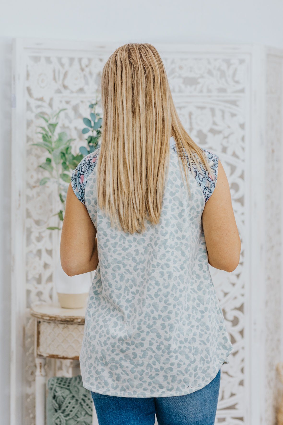 Get Up And Try Leopard Print With Snakeskin Detail Tank Top in Light Mint