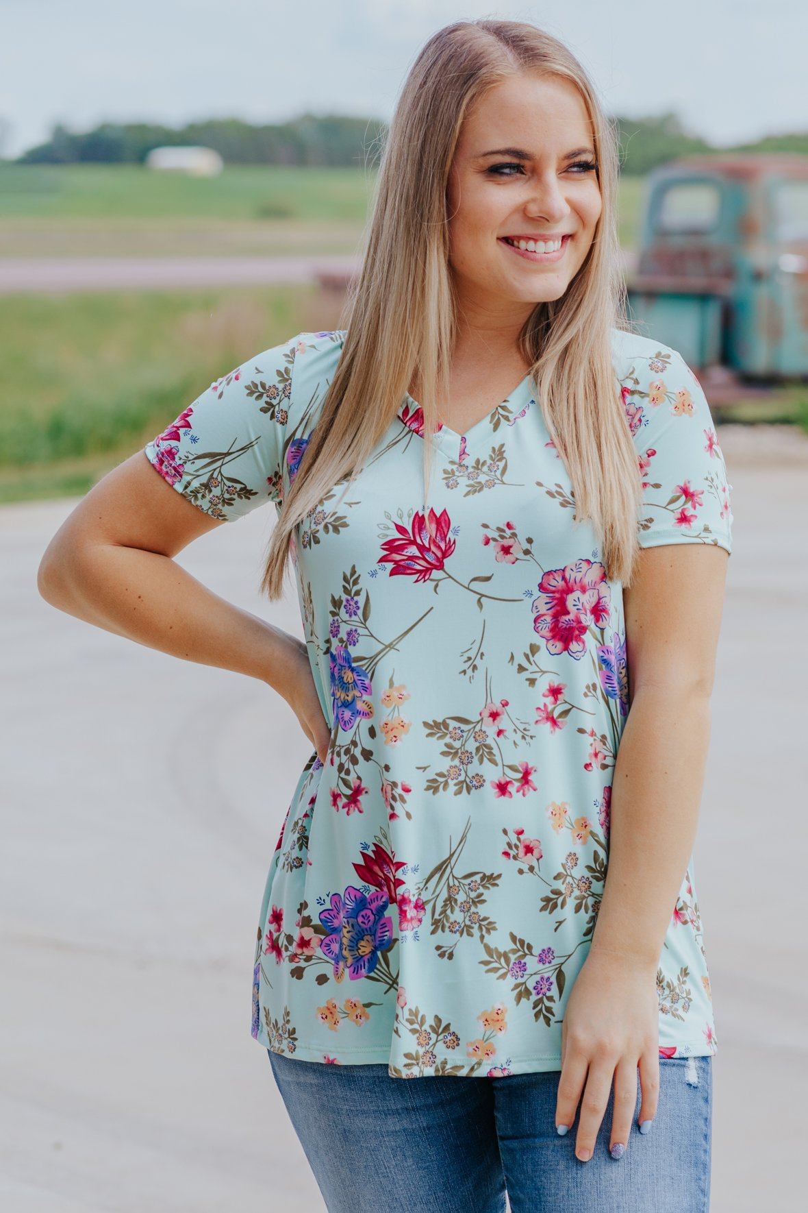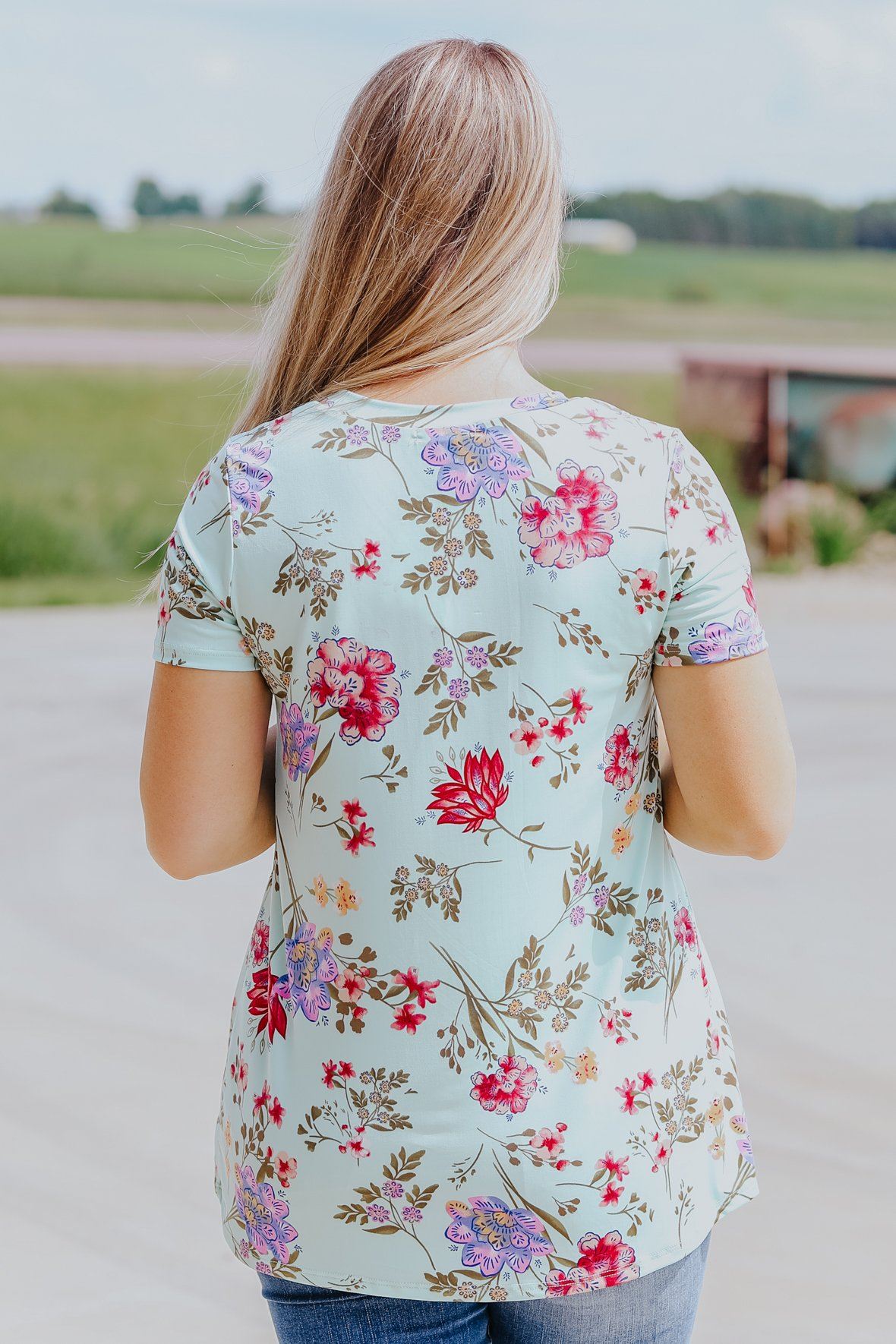 Be a Diamond Floral Print Short Sleeve Top in Mint