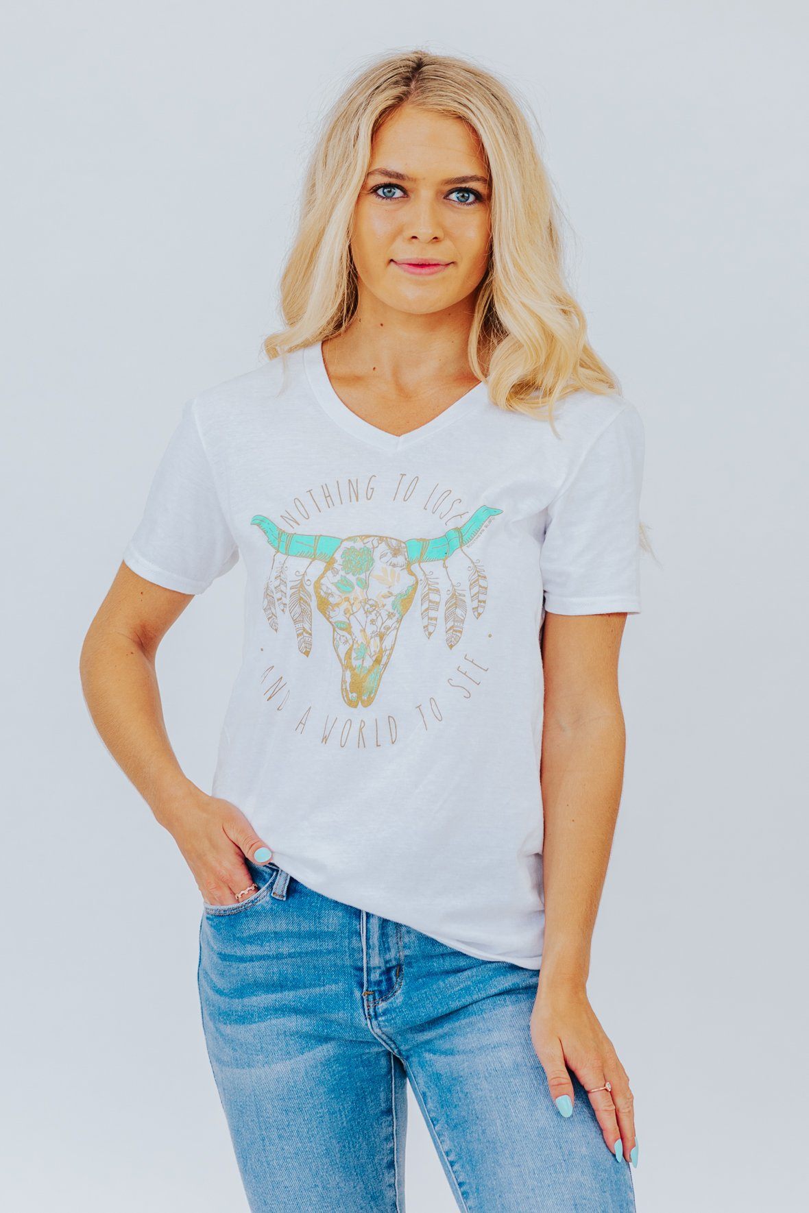 - Text Says "NOTHING TO LOSE AND A WORLD TO SEE" in Gold writing