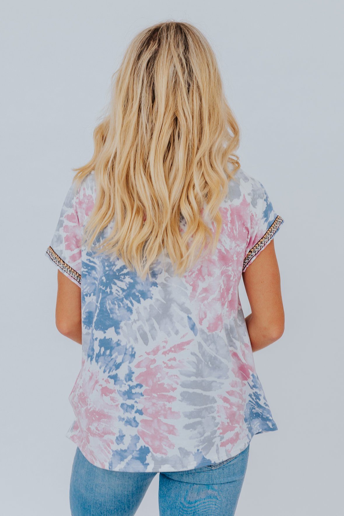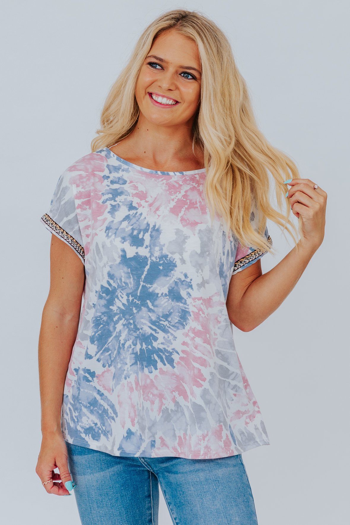 I Want You Tie Dye Short Sleeve Top in Blue Grey