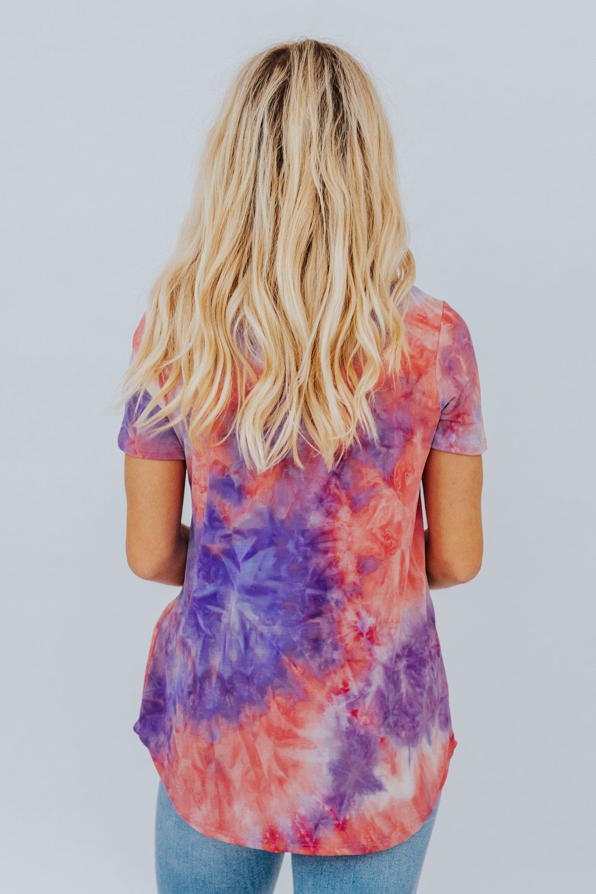 Enjoy Summer Tie Dye Criss Cross Detail Short Sleeve Top in Pink