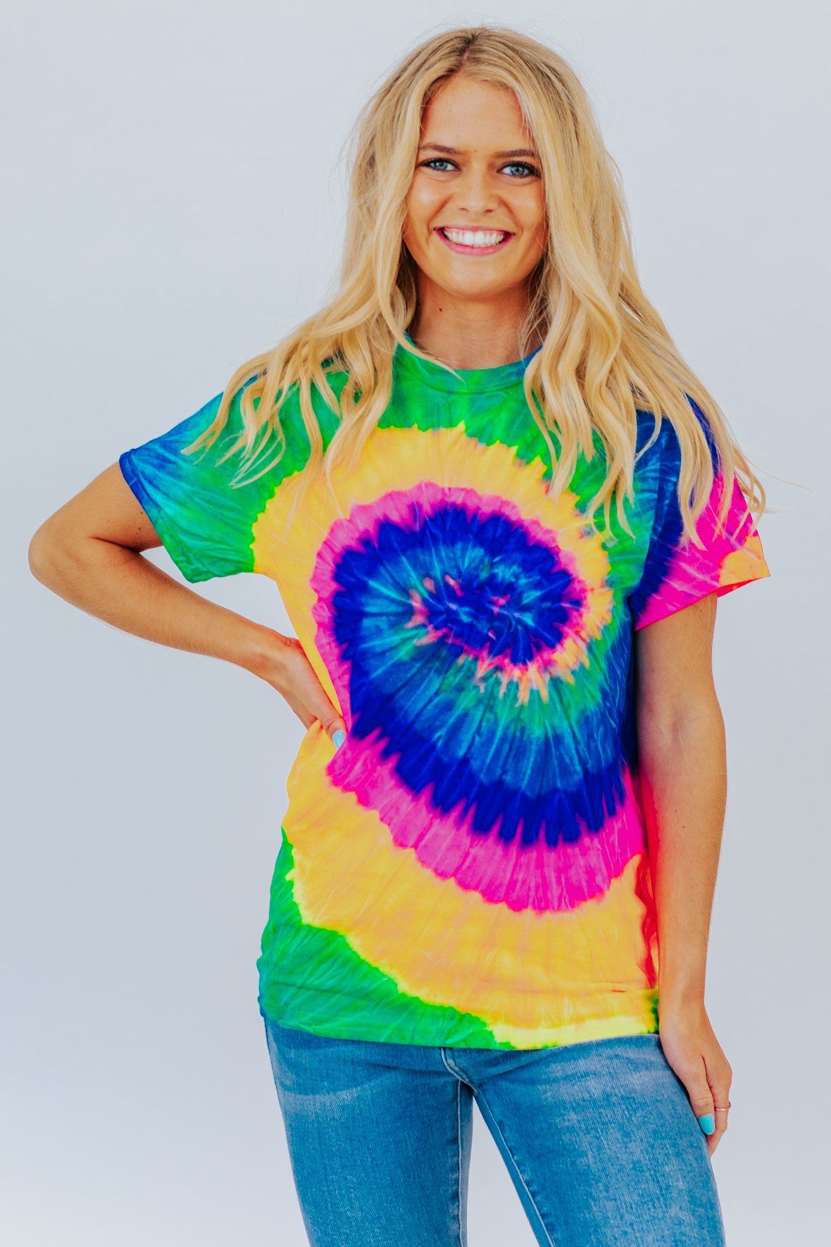 Heart Wants What It Wants Tie Dye Short Sleeve Top in Blue