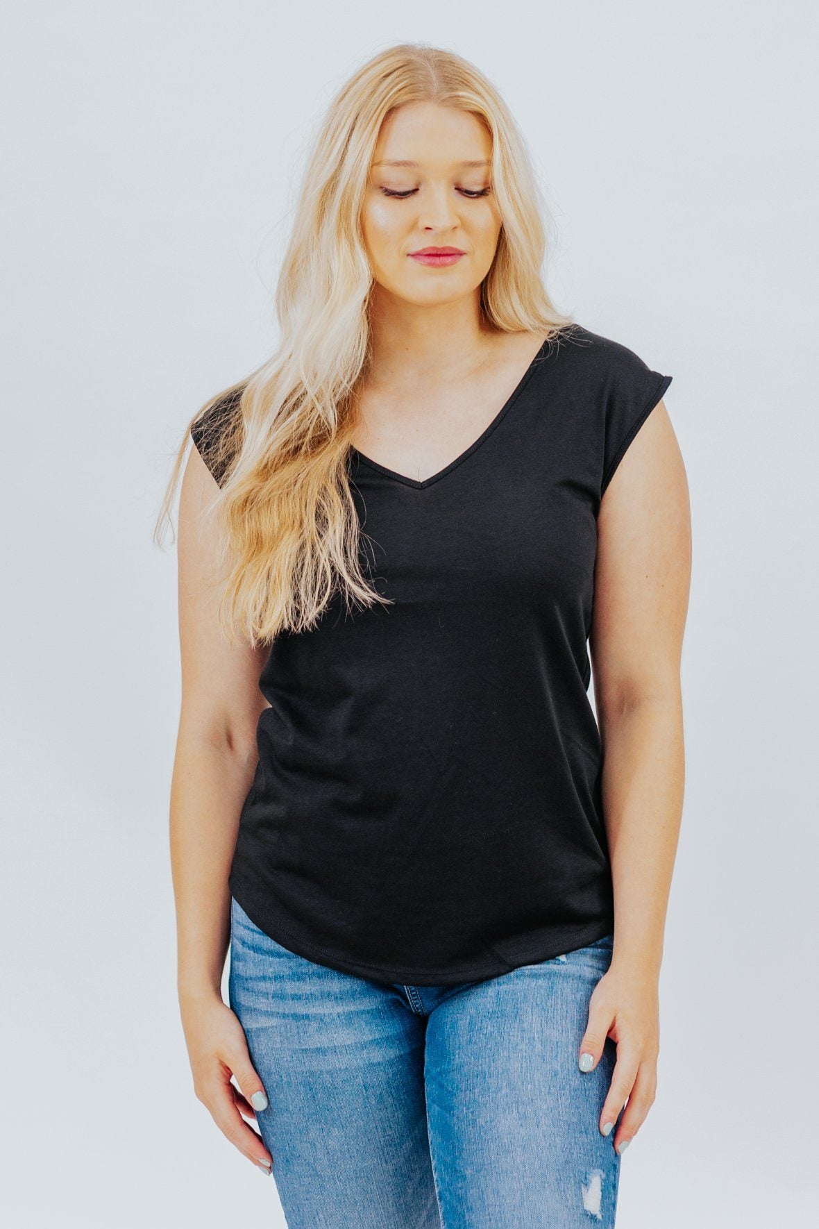 What's A Girl to Do V-Neck Sleeveless Tank Top in Black