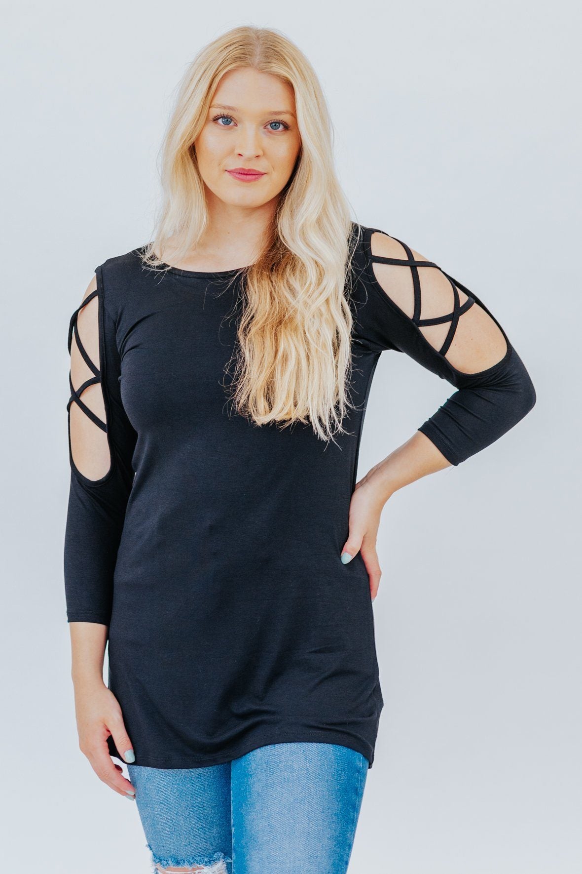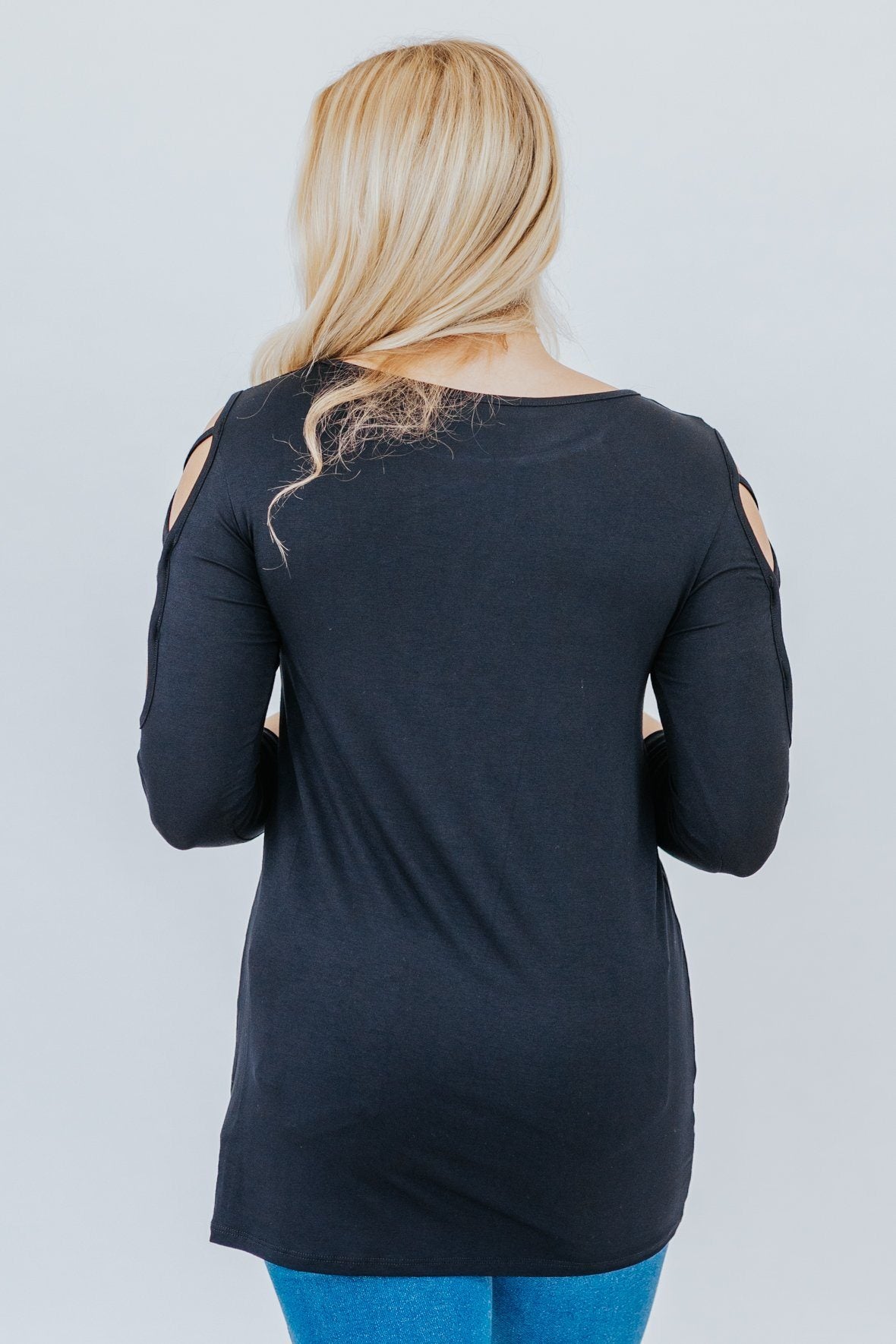 Dream On Cold Shoulder 3/4 Sleeve Top in Black