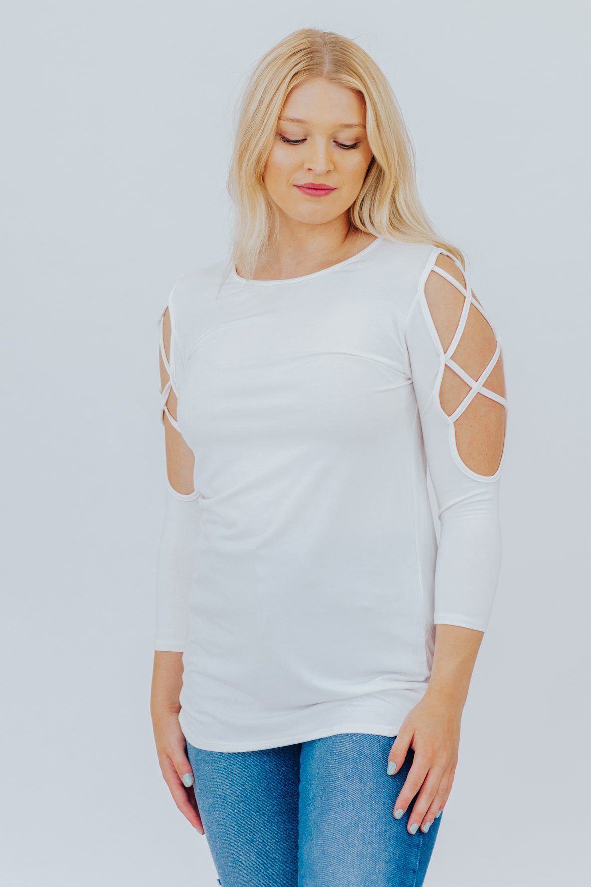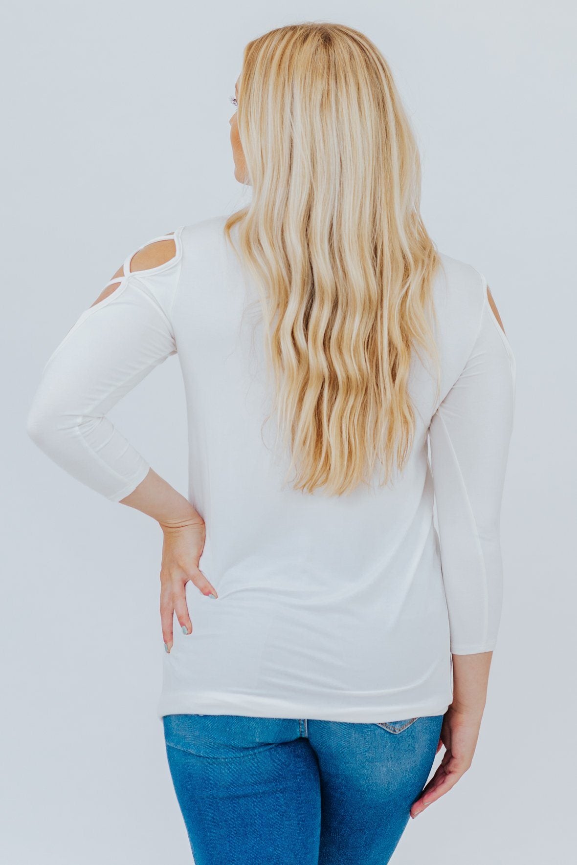 Dream On Cold Shoulder 3/4 Sleeve Top in White