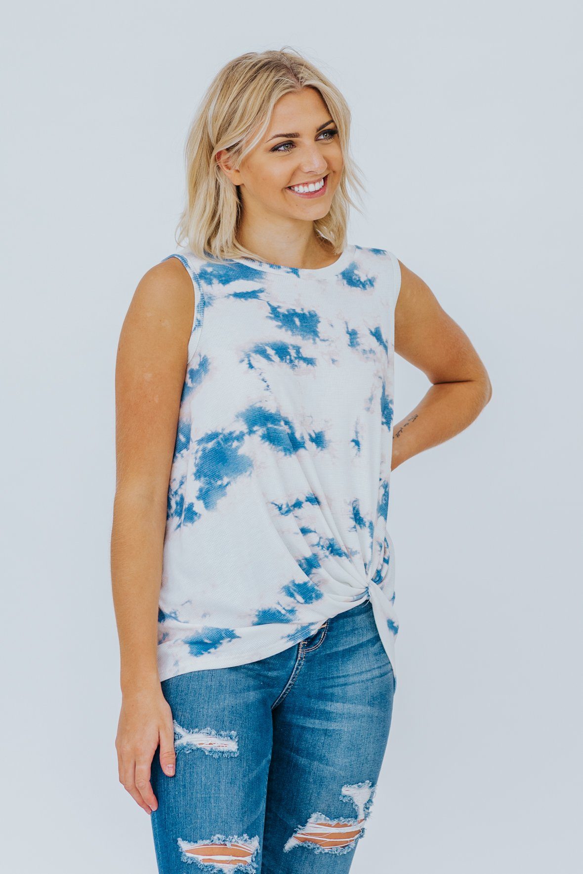 Hey Soul Sister Tie Dye Front Knot Detail Tank Top in Ivory