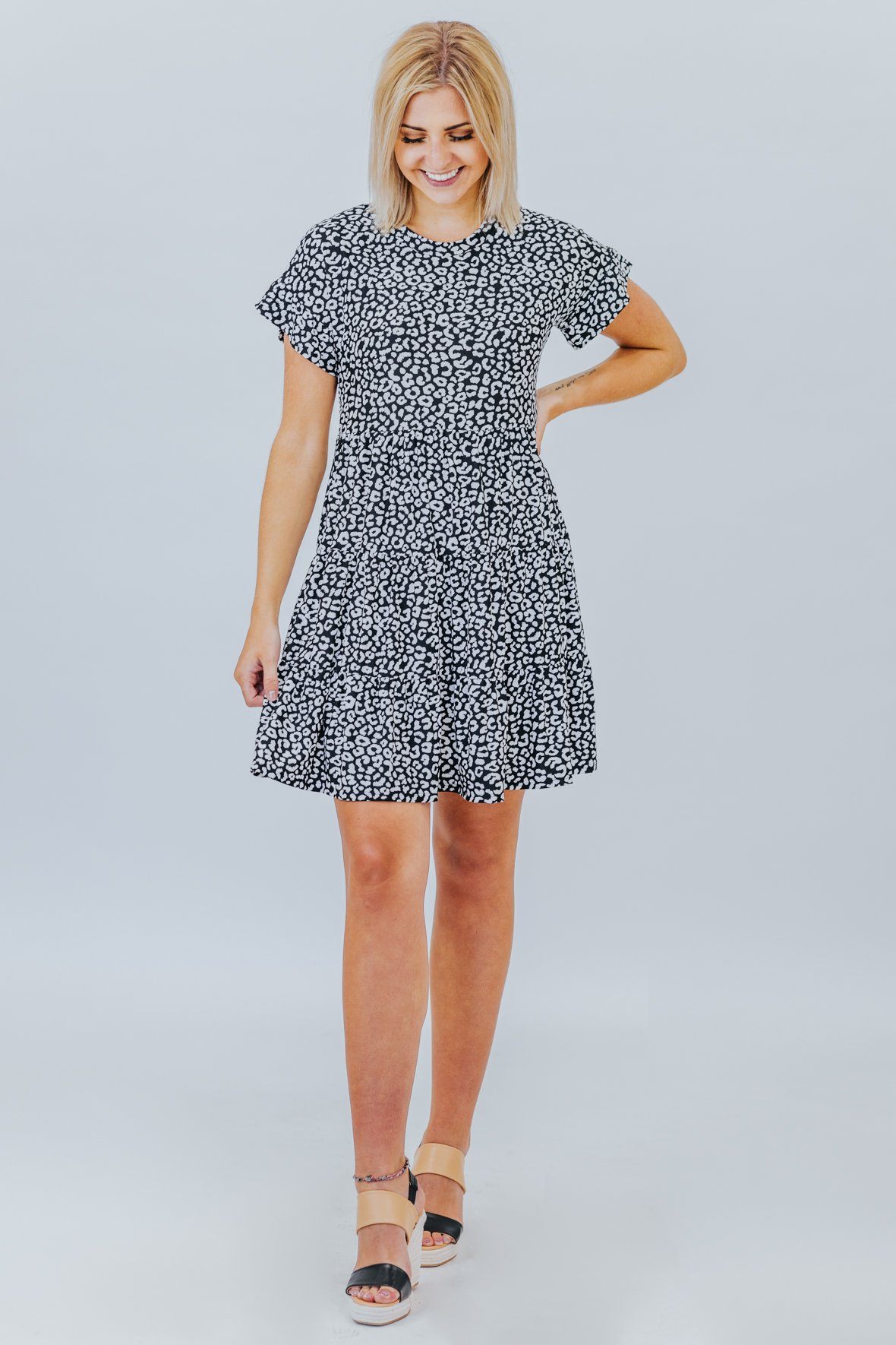 Don't Look At Me Like That Leopard Print Baby Doll Dress In Black