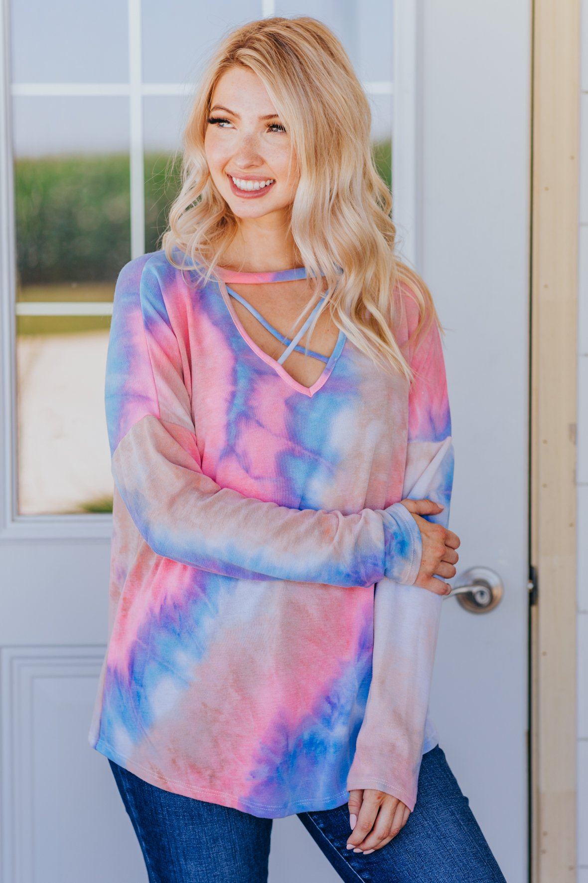 Everything To Me Tie Dyed Long Sleeve In Neon Pink