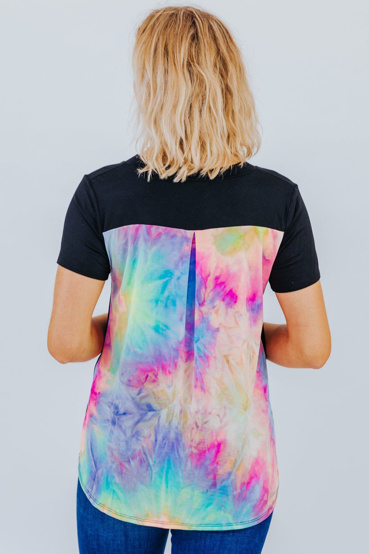 Feeling Blessed Tie Dye Short Sleeve Top in Black