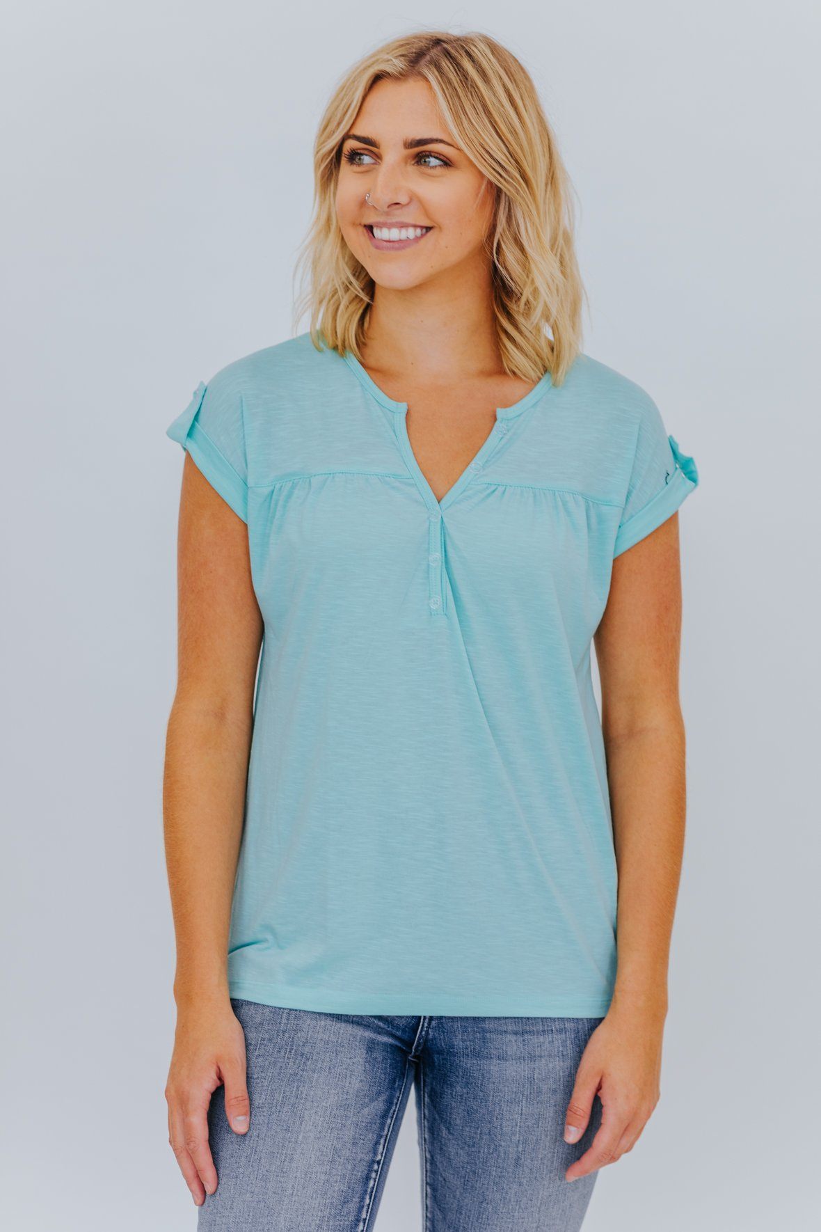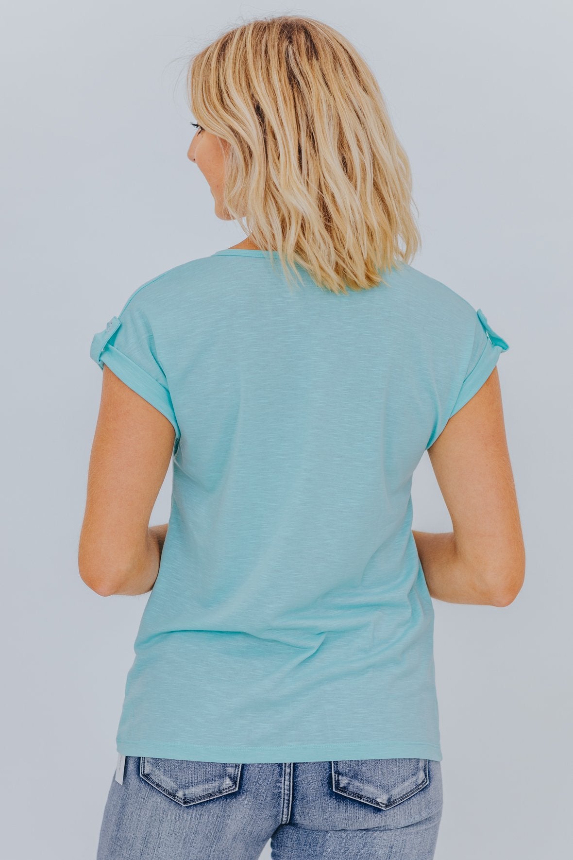 Happiness Has Been Found Button Detail Short Sleeve Top in Sky Blue