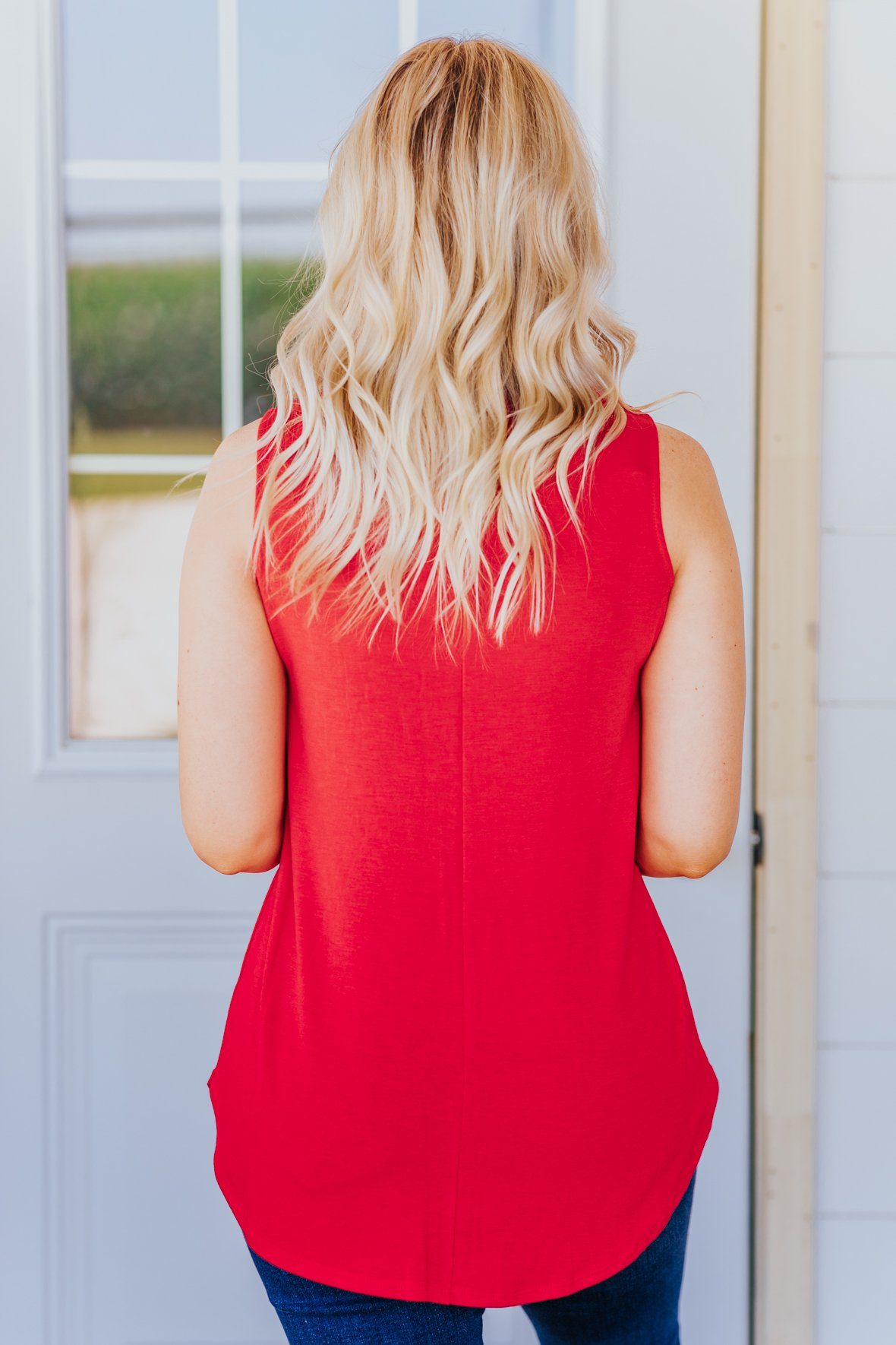 First In Line Sleeveless Leopard Pocket Tank Top in Red