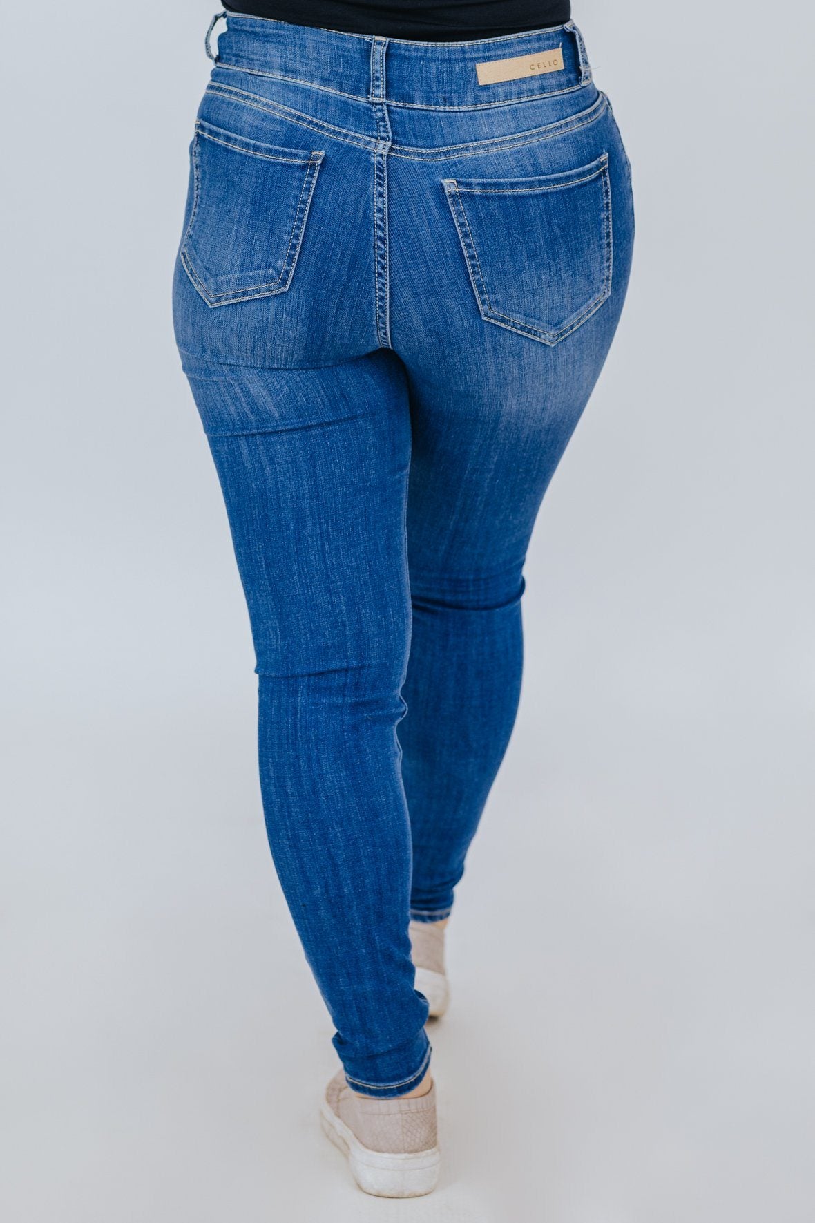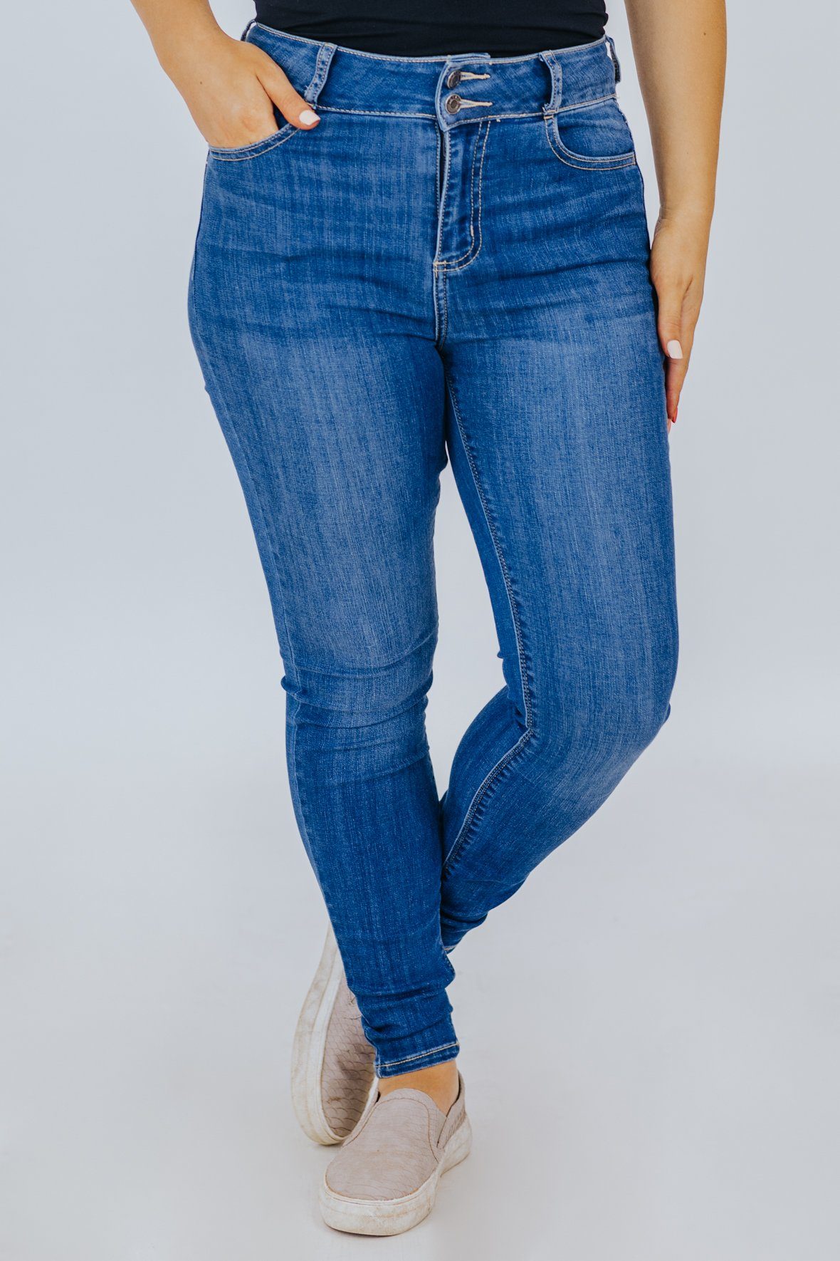 Cassie Cello High Rise 2 Button Skinny Medium Wash Jeans
