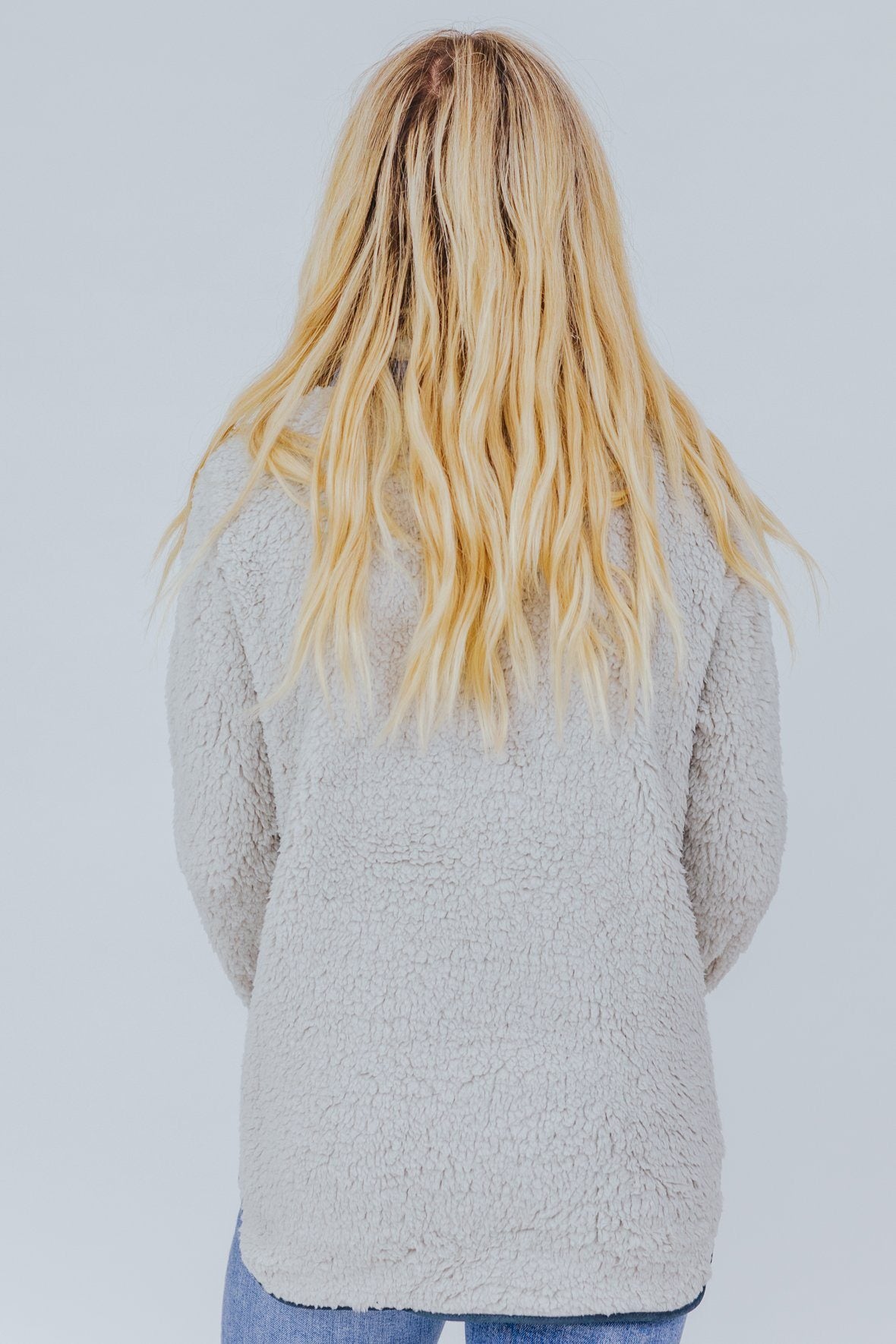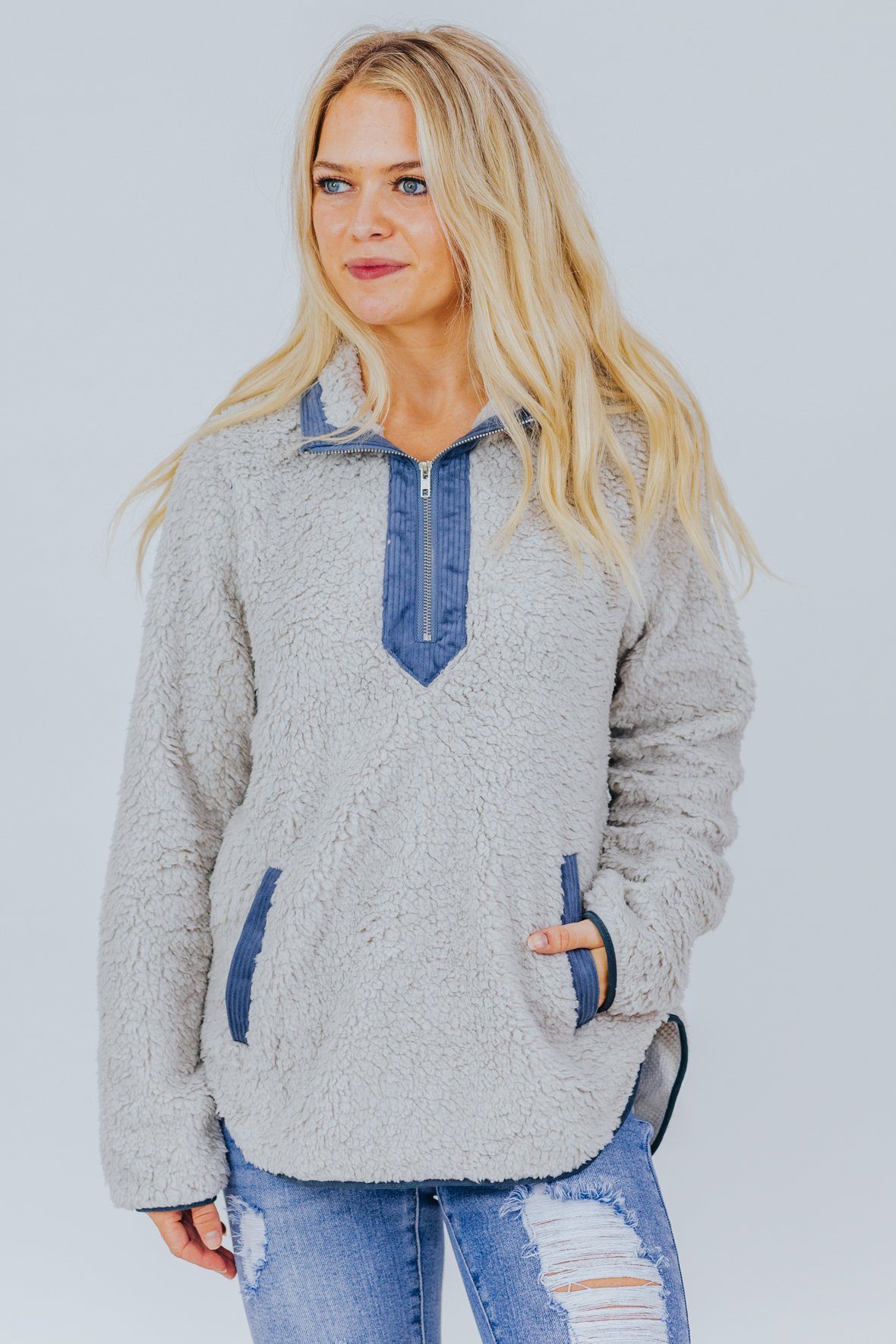 Easier To Love Quarter Zip Sherpa in Grey / Slate Blue