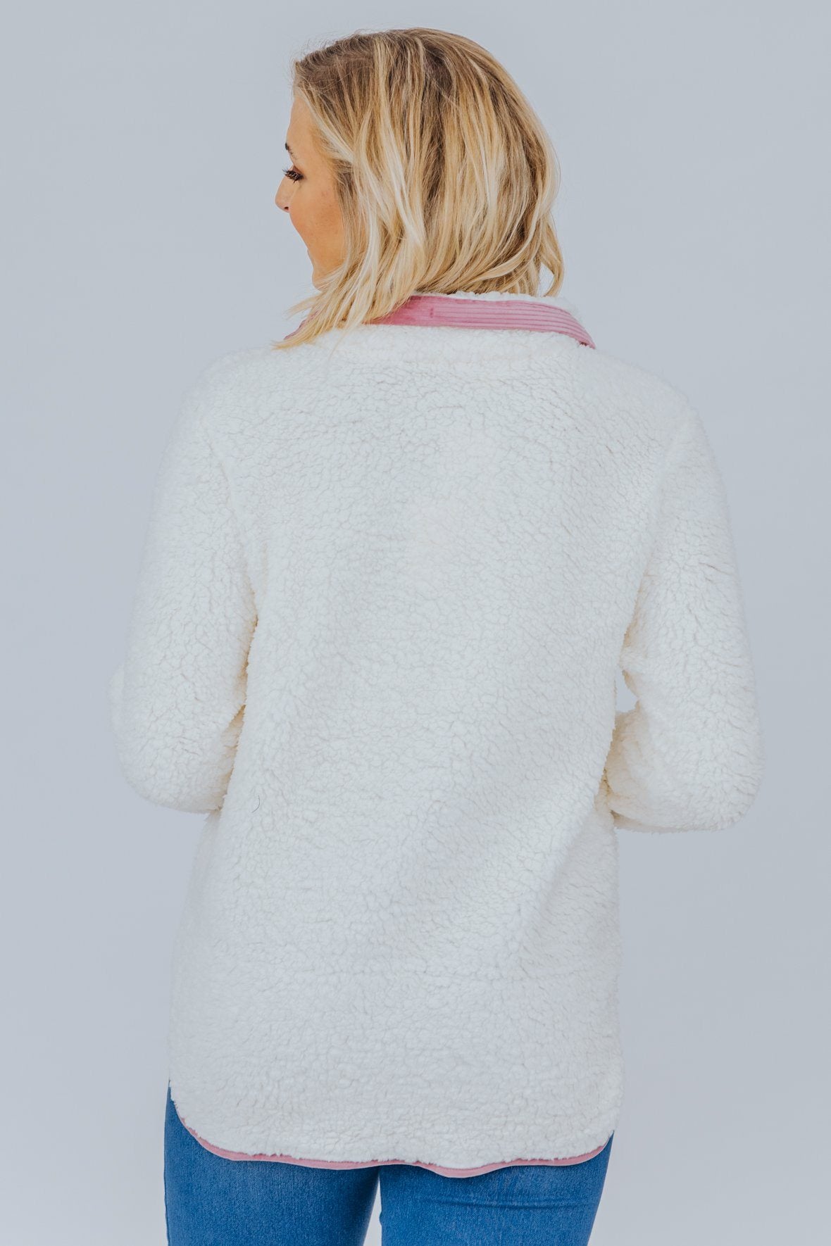 Easier To Love Quarter Zip Sherpa in Ivory / Mauve