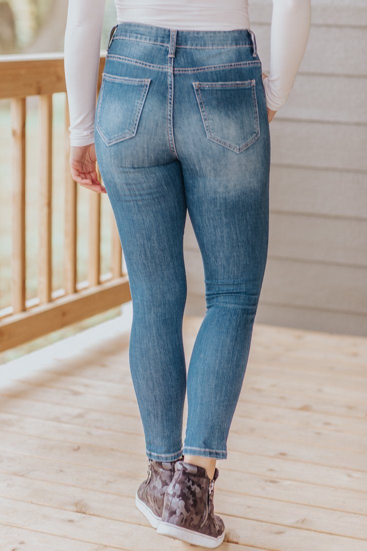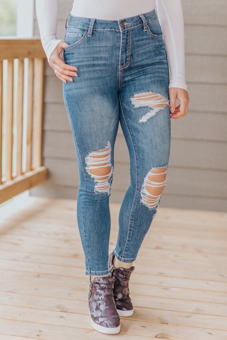 Cyrene Cello High Rise Distressed Dark Wash Skinny Jeans