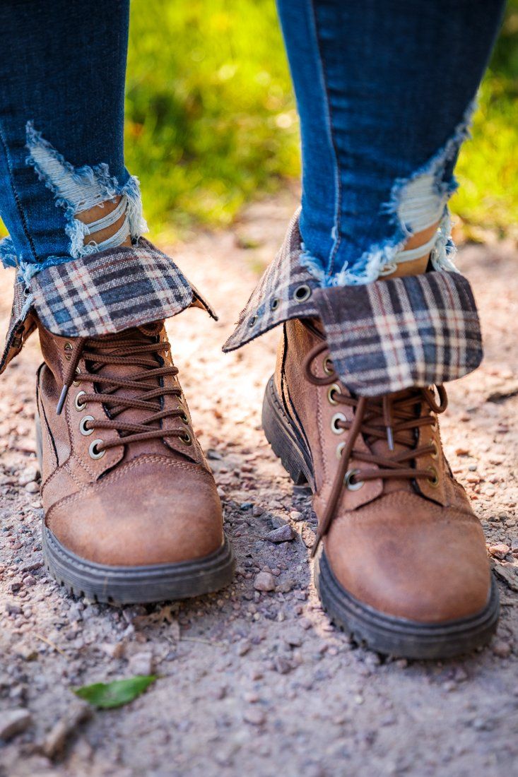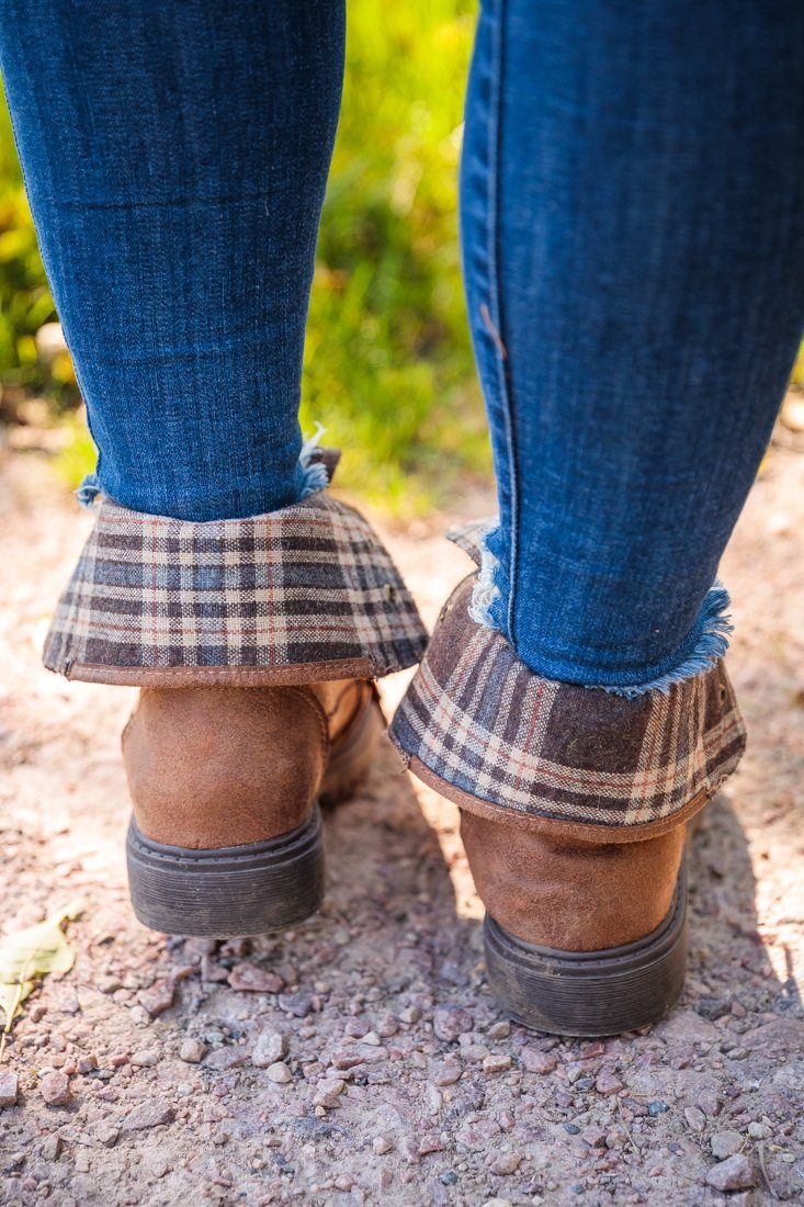 Colonel Sanders Plaid Detail Lace Up Booties in Tan