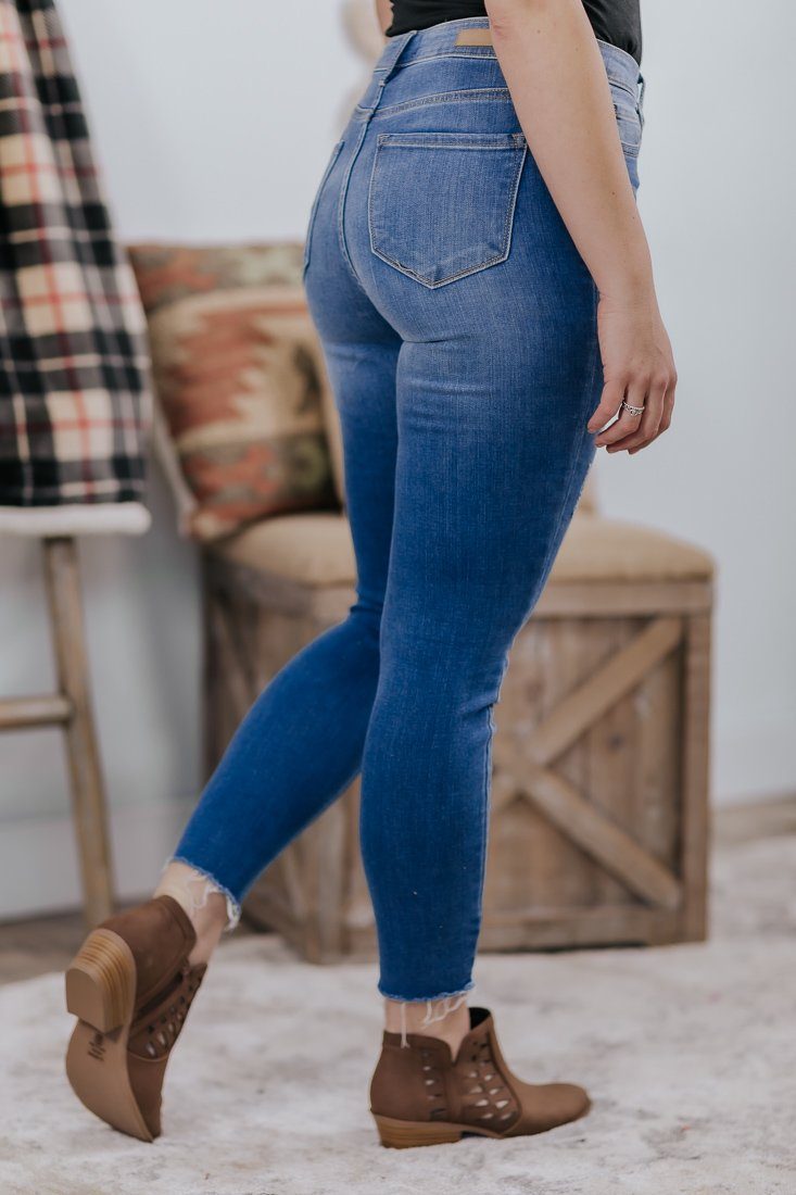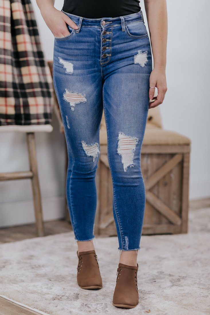 Carrah Cello High Rise 5 Button Distressed Medium Wash Skinny Jeans