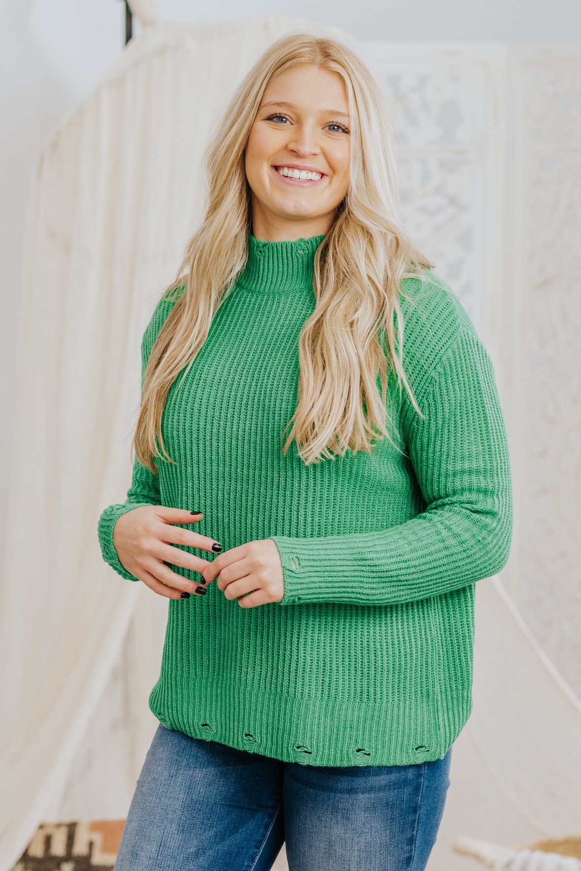 Fast Forward The Week Distressed Sweater in Kelly Green
