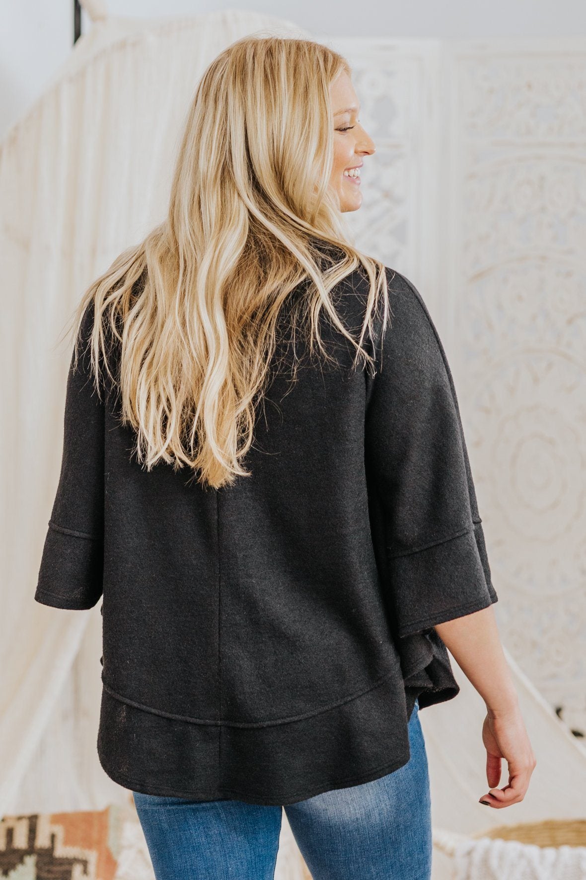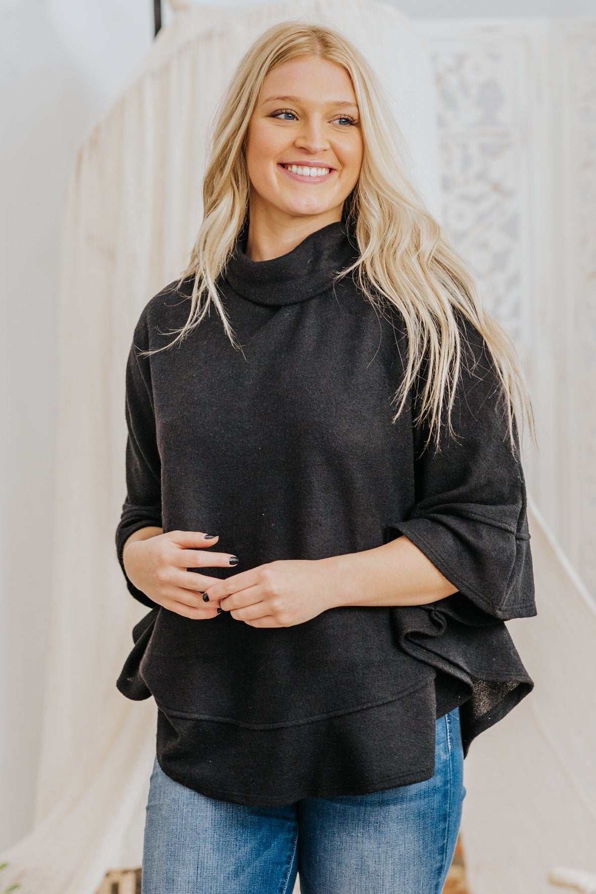 *DEAL*: A Class Of Your Own 3/4 Sleeve Cowl Neck Poncho Top in Black
