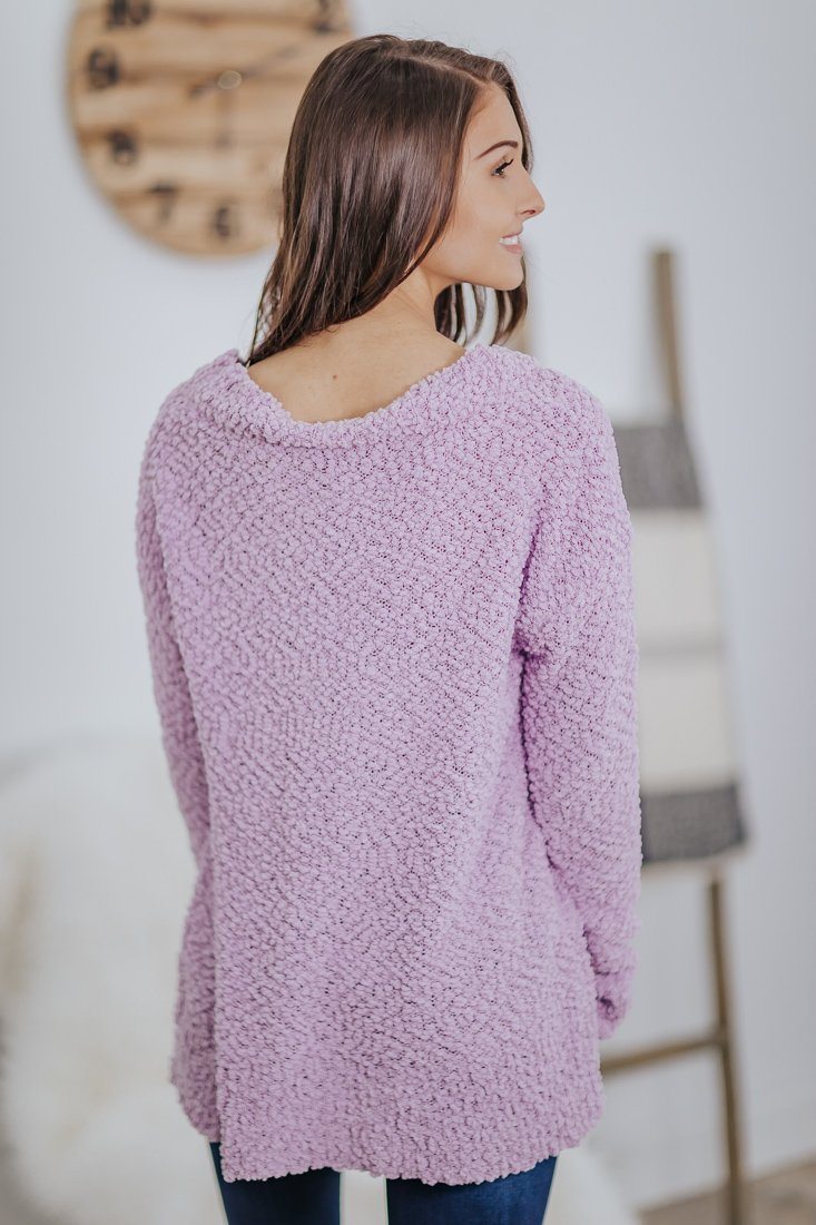 Best Of The Best Popcorn V Neck Sweater in Dusty Lavender