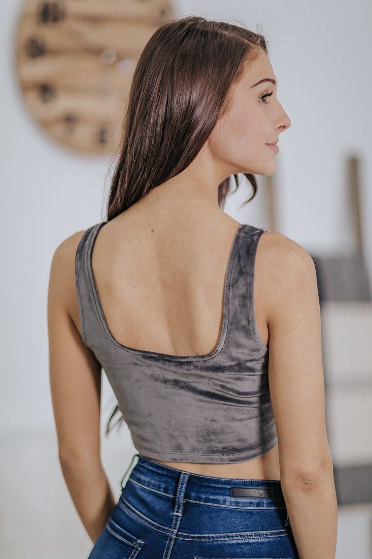 *DEAL* Comfy Alert Velvet Bralette or Crop Top in Charcoal