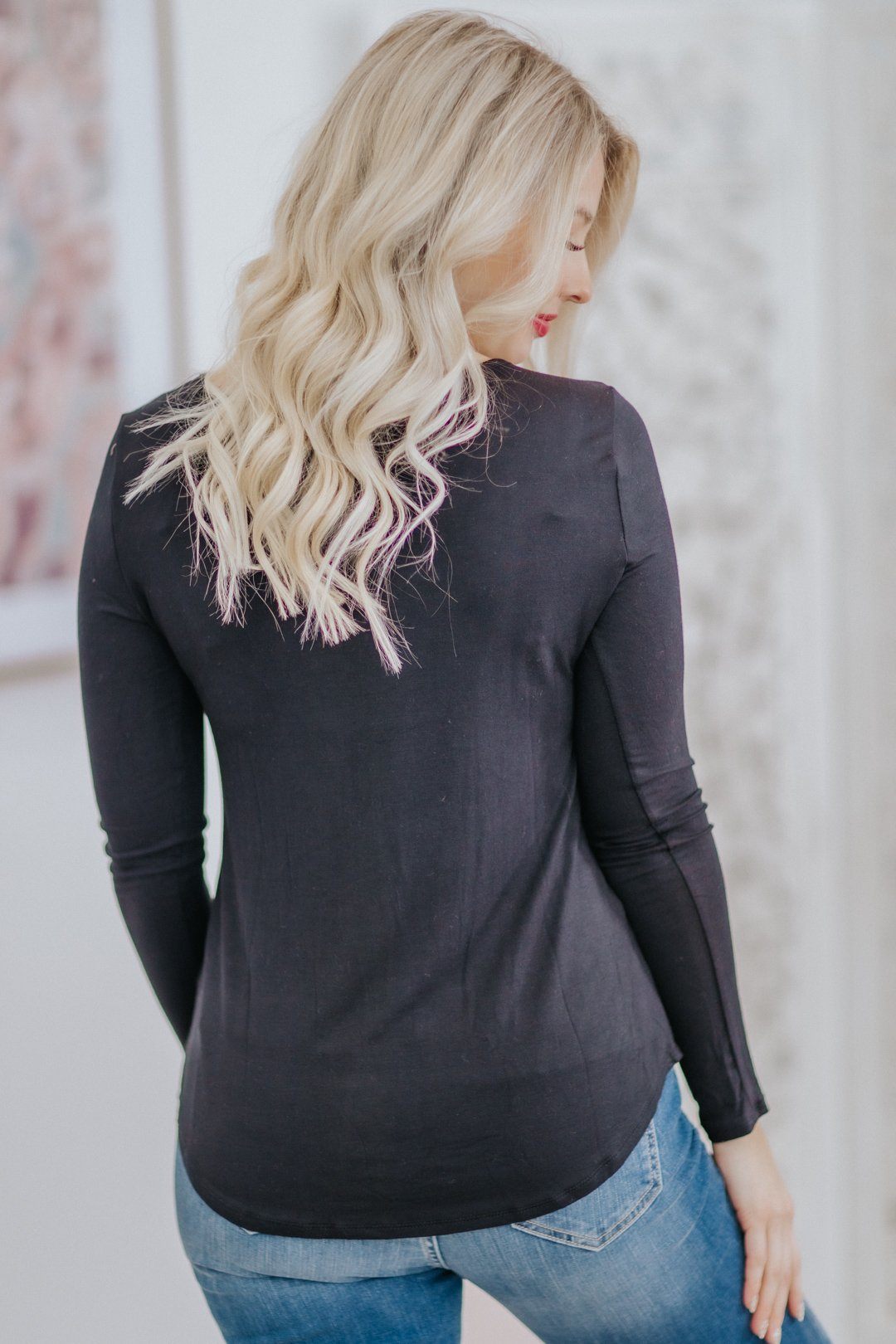*DEAL* Successful Noise Criss Cross V Neck Long Sleeve Top in Black
