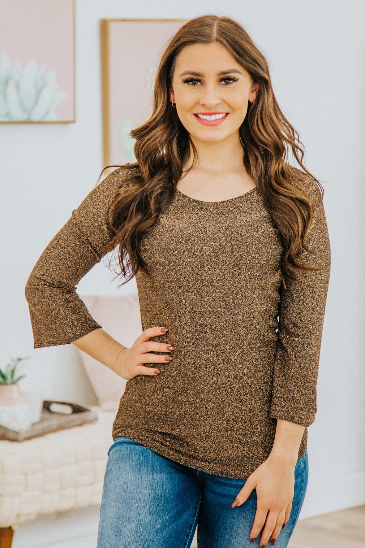 Celebrate The Shine Gold Glitter 3/4 Sleeve Top in Bronze
