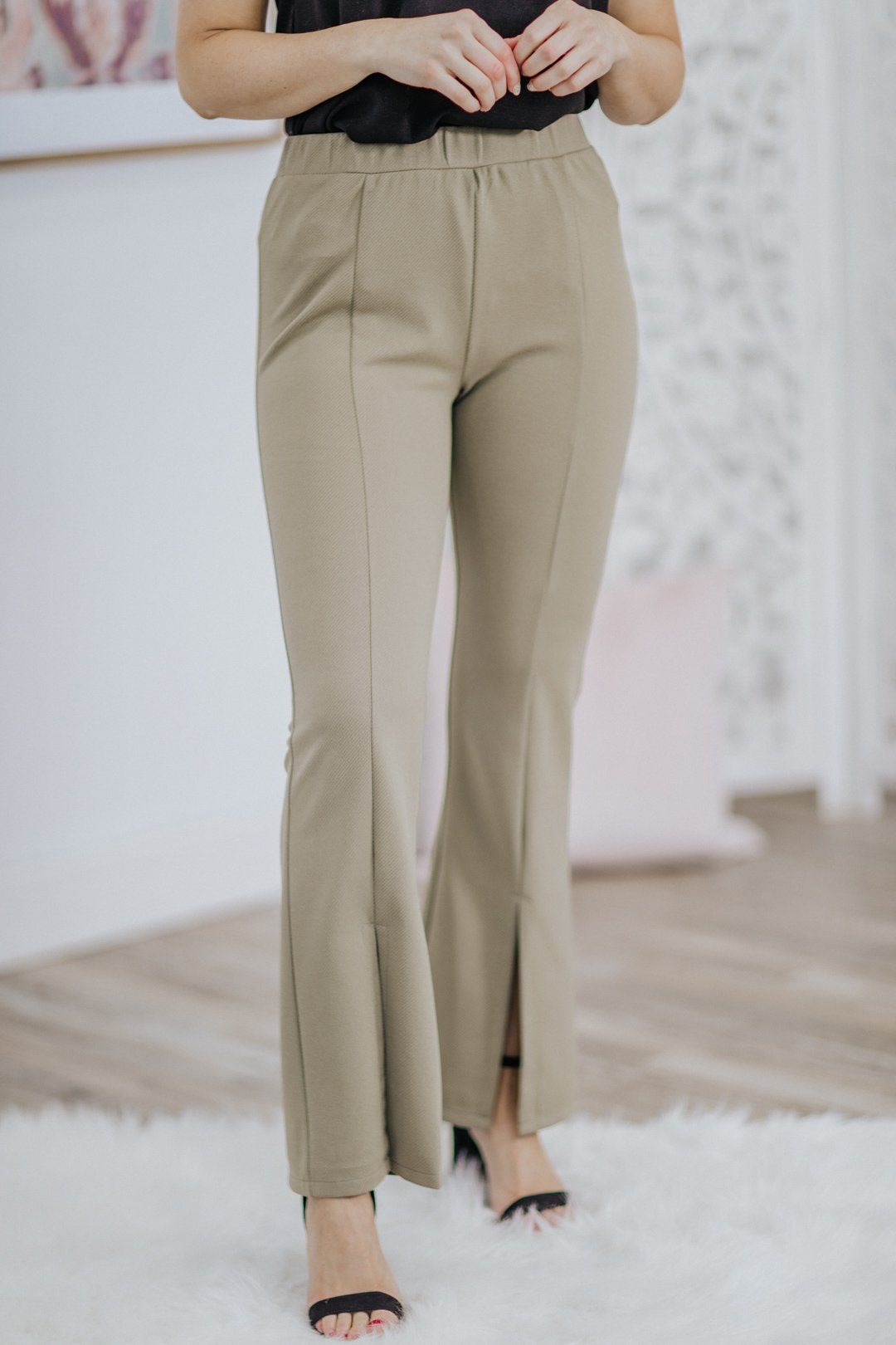 Determined Heart Elastic Waist Front Slit Trumpet Pants in Olive