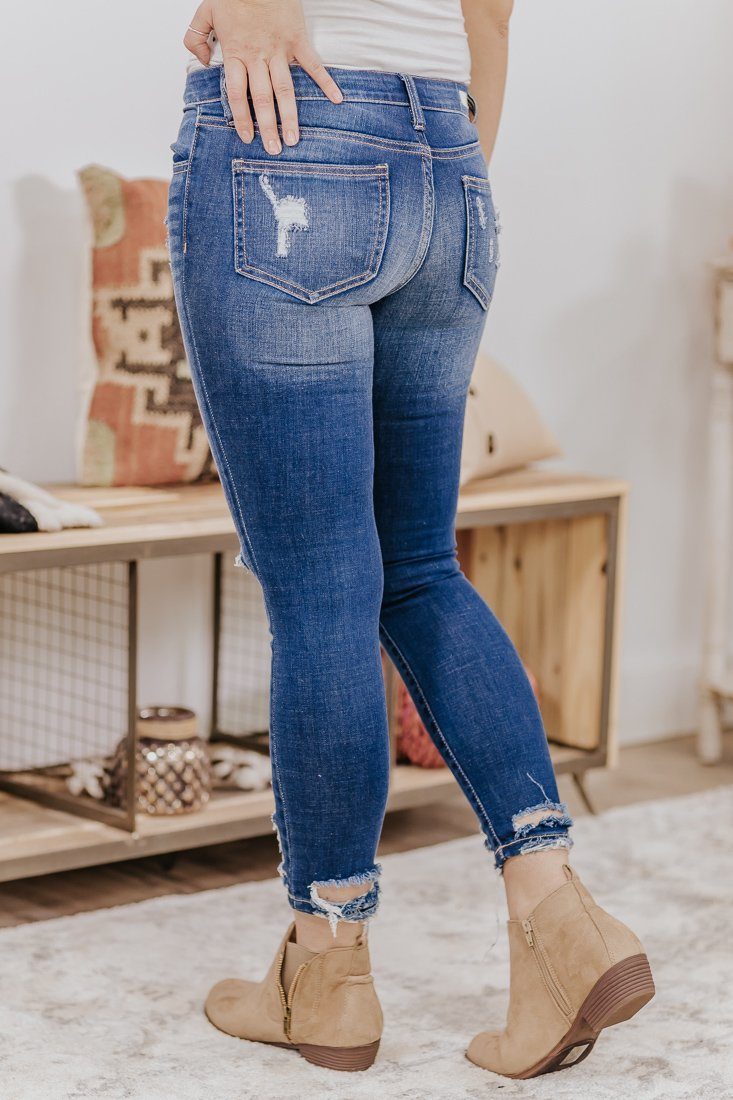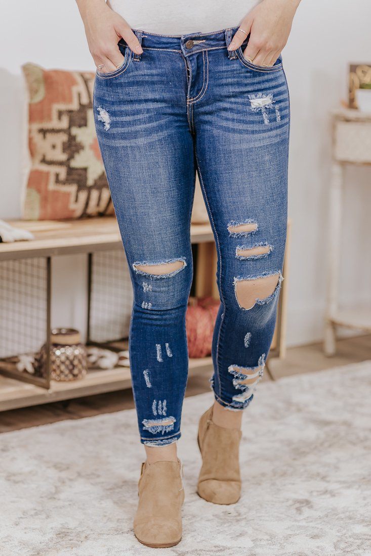 Cain Cello Dark Wash Mid Rise Destroyed Ankle Cutout Skinny Jeans